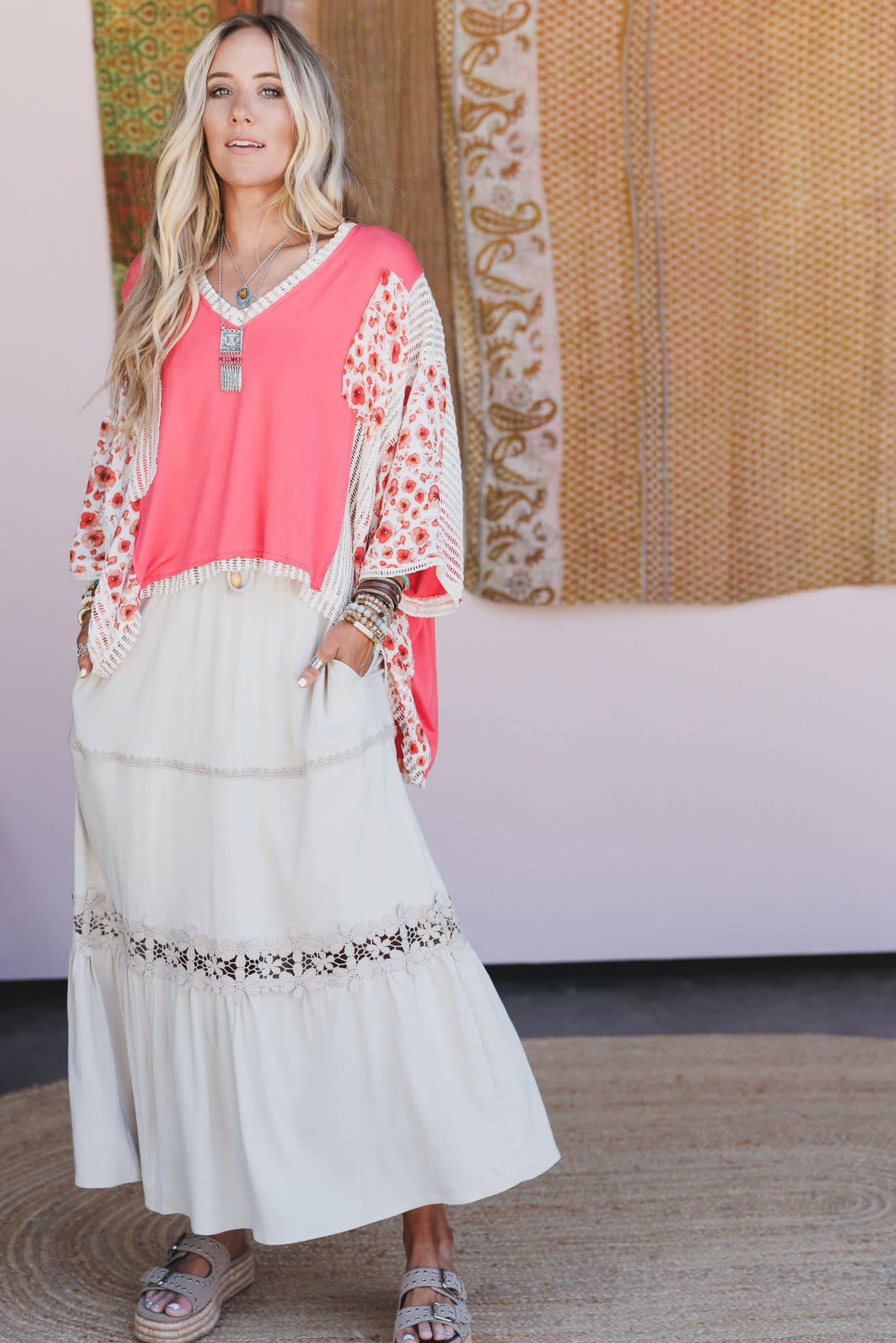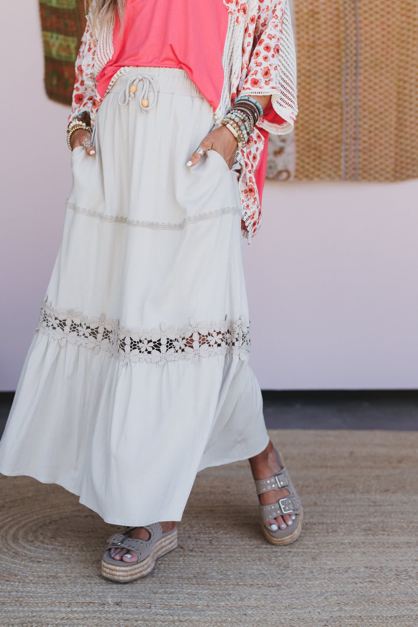 Excited to bring you the Desert Lace Skirt from our exclusive collection; The Nest by Three Bird Nest. Check out the rest of the collection here. Pair this maxi skirt with a graphic tee for a cool casual look.