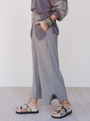 This set is what cozy dreams are made of. The Nest Easy Days Contrast Set combines relaxed comfort with curated detail—from the striped accents to the raw hem finish, it’s an off-duty look that still feels styled. Whether you're lounging at home or headed to the market, this matching duo is your new go-to.