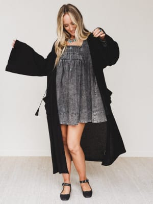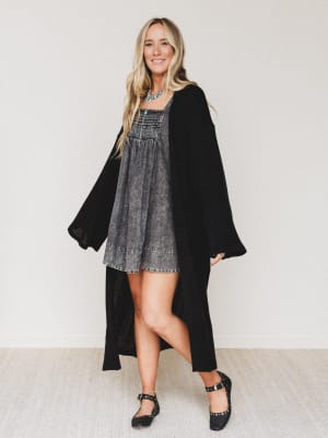 Wrap yourself in cozy, free-spirited vibes with The Nest Emma Lu Duster Cardigan. This dramatic longline layer brings warmth, flow, and just the right amount of boho mystery.