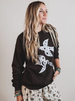Let your spirit soar in this soft, statement-making sweatshirt featuring two peaceful doves in flight. It’s the kind of easy layer you’ll reach for all season—cozy, meaningful, and effortlessly cool.