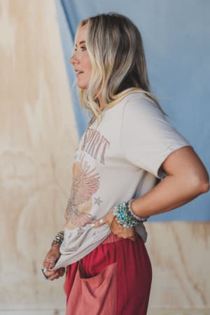 Excited to bring you the Freedom Spark Graphic Tee from our exclusive collection; The Nest by Three Bird Nest. Check out the rest of the collection here. Wear this boho graphic tee with your favorite jeans and sneakers for a cool casual look.