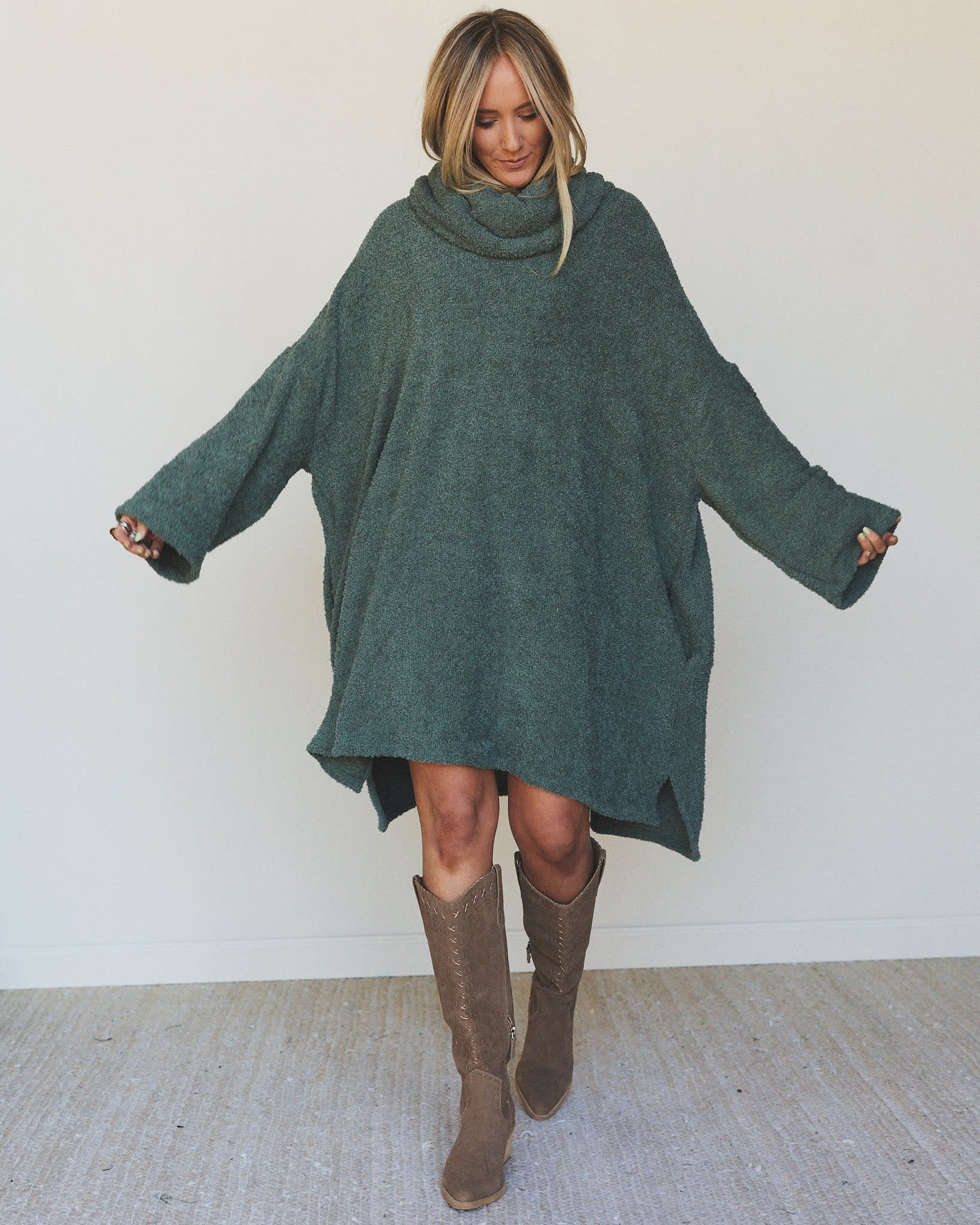This sweater dress is your new go-to for laid-back luxury—whether you’re curling up with a book or catching the golden hour.