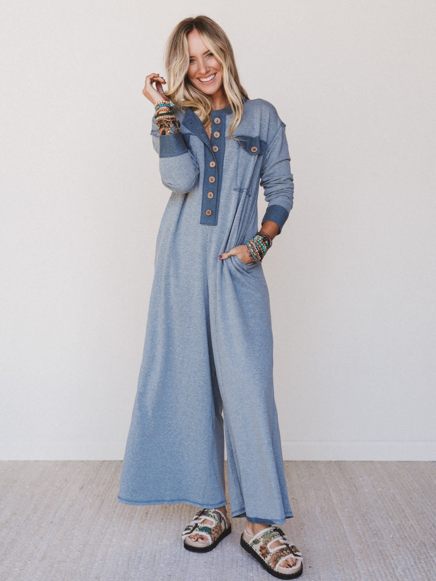 Whether you're lounging, layering, or living your best cozy life, this jumpsuit brings a whole new meaning to effortless style.