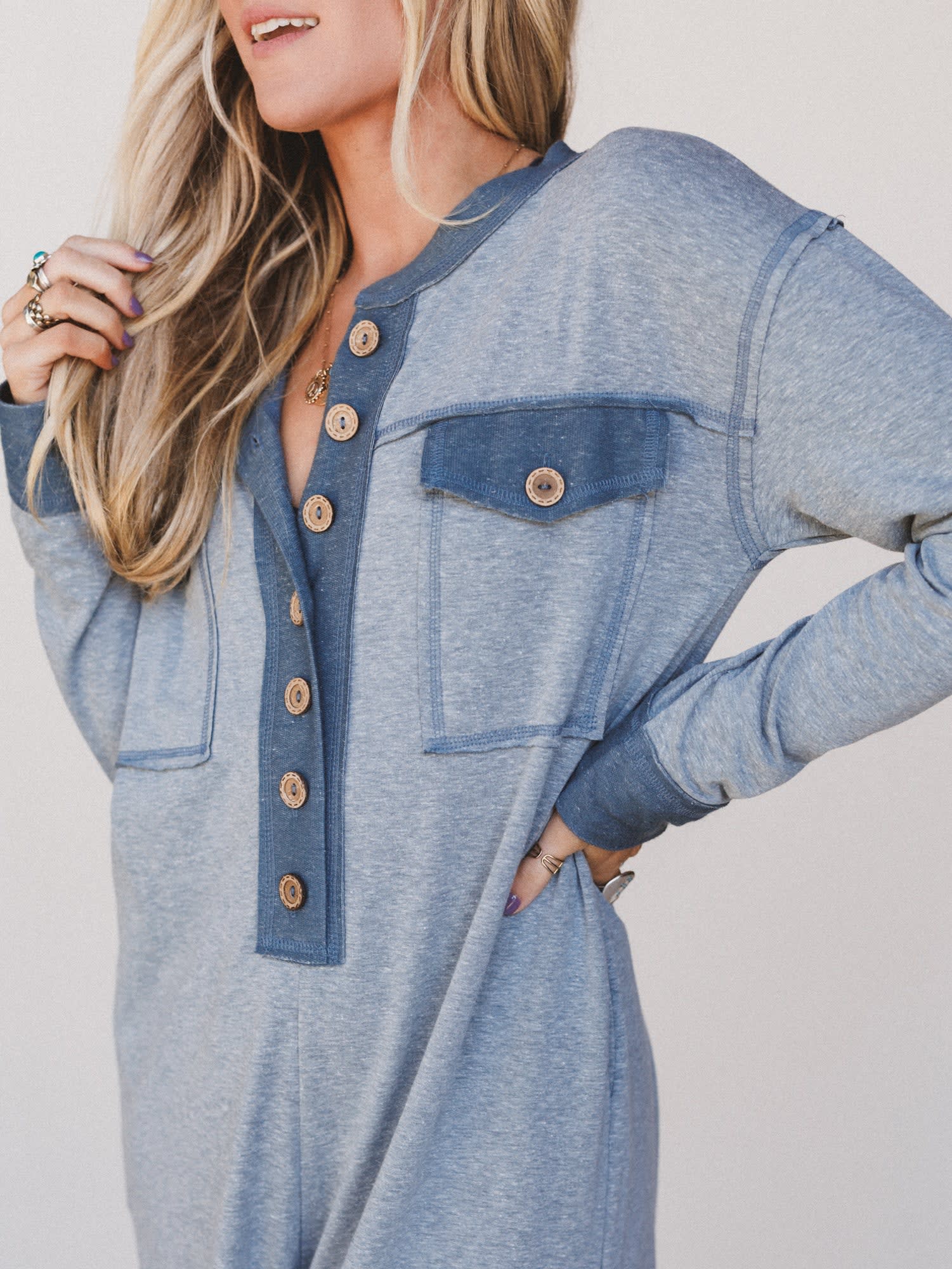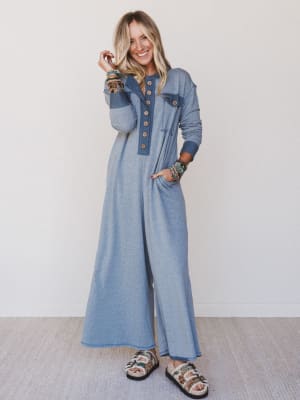 One and done, in the softest way possible. The Nest Jodi Jumpsuit is your go-to for easy, pulled-together comfort. With its laid-back fit and Henley-style button front, this piece is made for slow mornings, spontaneous road trips, or curling up with your journal and a warm drink.