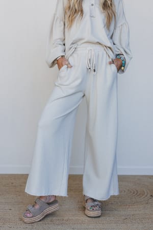 - Excited to bring you the Laid Back Love Pants from our exclusive collection; The Nest by Three Bird Nest. Check out the rest of the collection here - Inspired by you, created by us. These beige wide-leg pants bring effortless boho elegance to your wardrobe. Perfect for lounging or exploring.