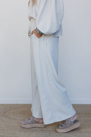 Excited to bring you the Laid Back Love Pants from our exclusive collection; The Nest by Three Bird Nest. Check out the rest of the collection here - Inspired by you, created by us. These beige wide-leg pants bring effortless boho elegance to your wardrobe. Perfect for lounging or exploring.