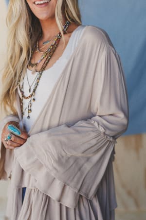 Excited to bring you the Layers Of Love Duster Kimono from our exclusive collection; The Nest by Three Bird Nest. Check out the rest of the collection here. Wear this tiered duster over a maxi dress or as a swim cover this summer.