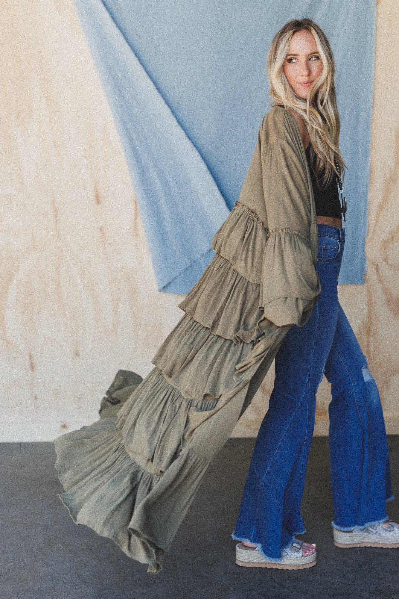 Excited to bring you the Layers Of Love Duster Kimono from our exclusive collection; The Nest by Three Bird Nest. Check out the rest of the collection here. Wear this tiered duster over a maxi dress or as a swim cover this summer.