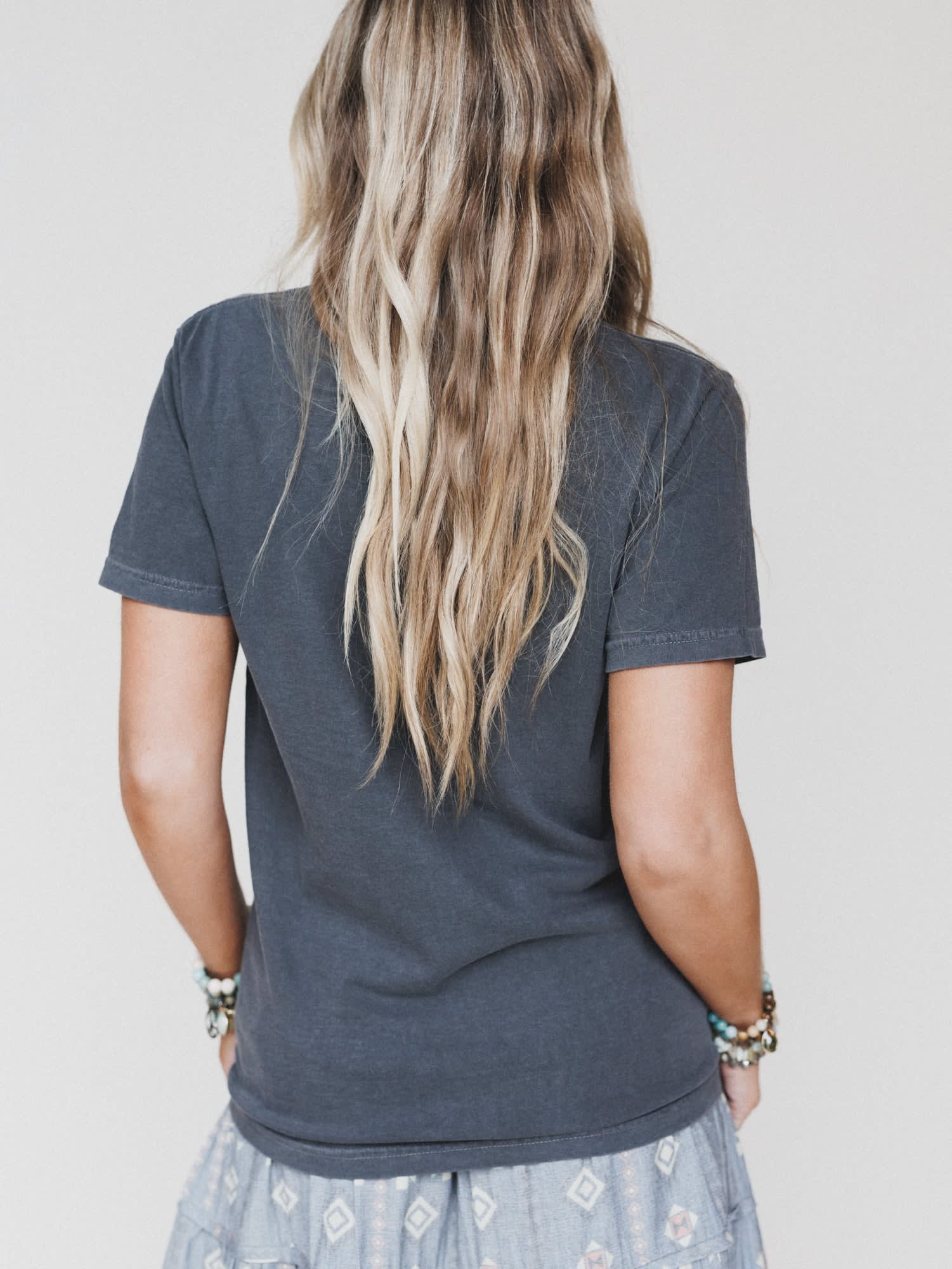 Perfect for pairing with denim, skirts, or your coziest lounge pants, this tee adds an effortlessly fun vibe to any outfit.
