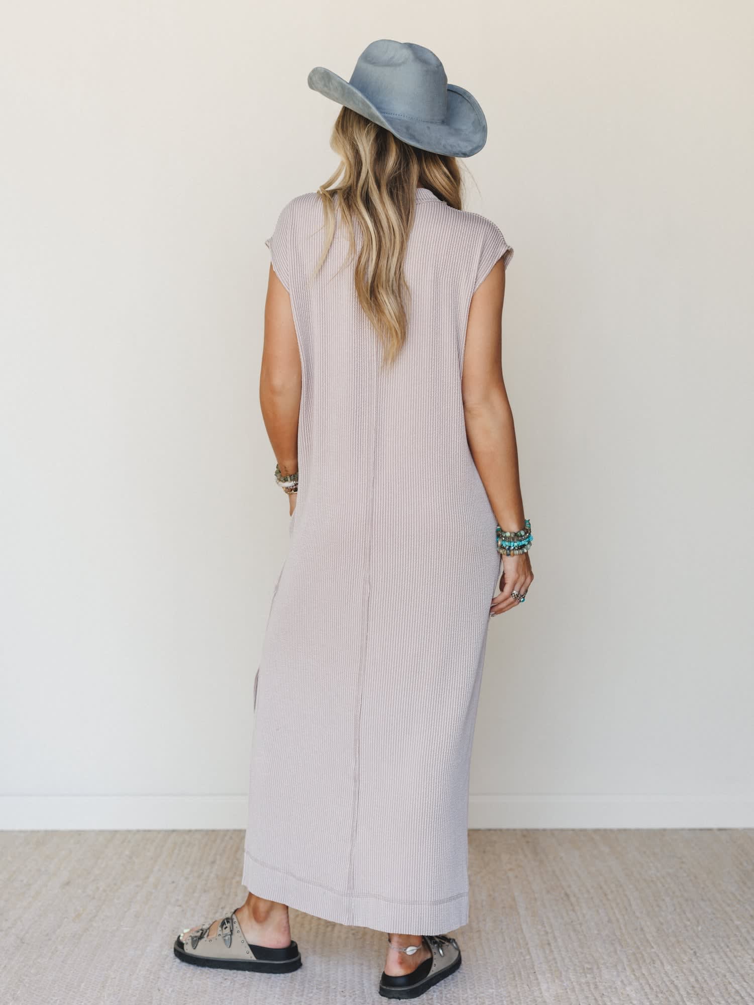 - A ribbed, textured fabric gives this maxi dress that elevated, effortless feel that reads casual but always looks intentional.