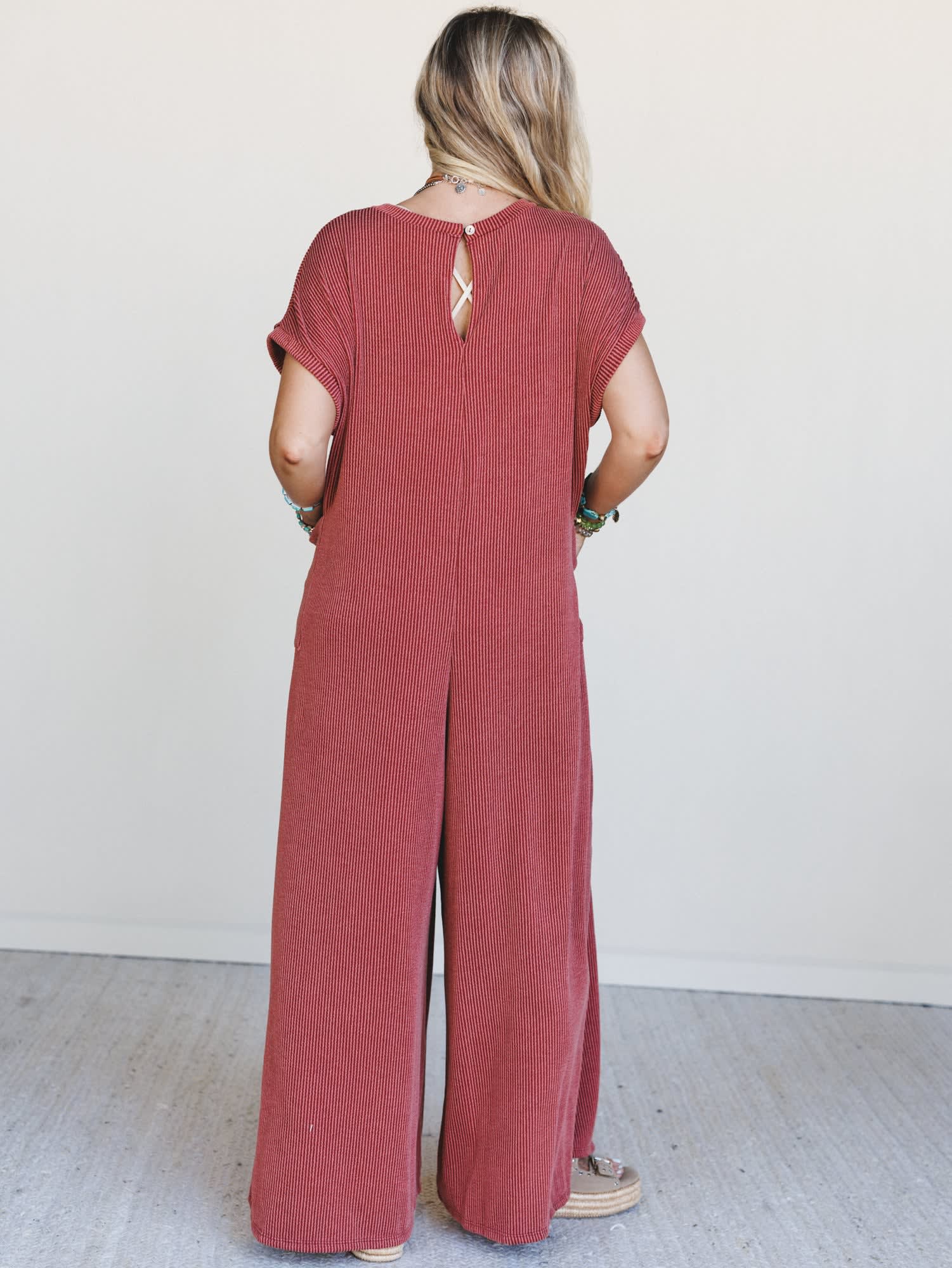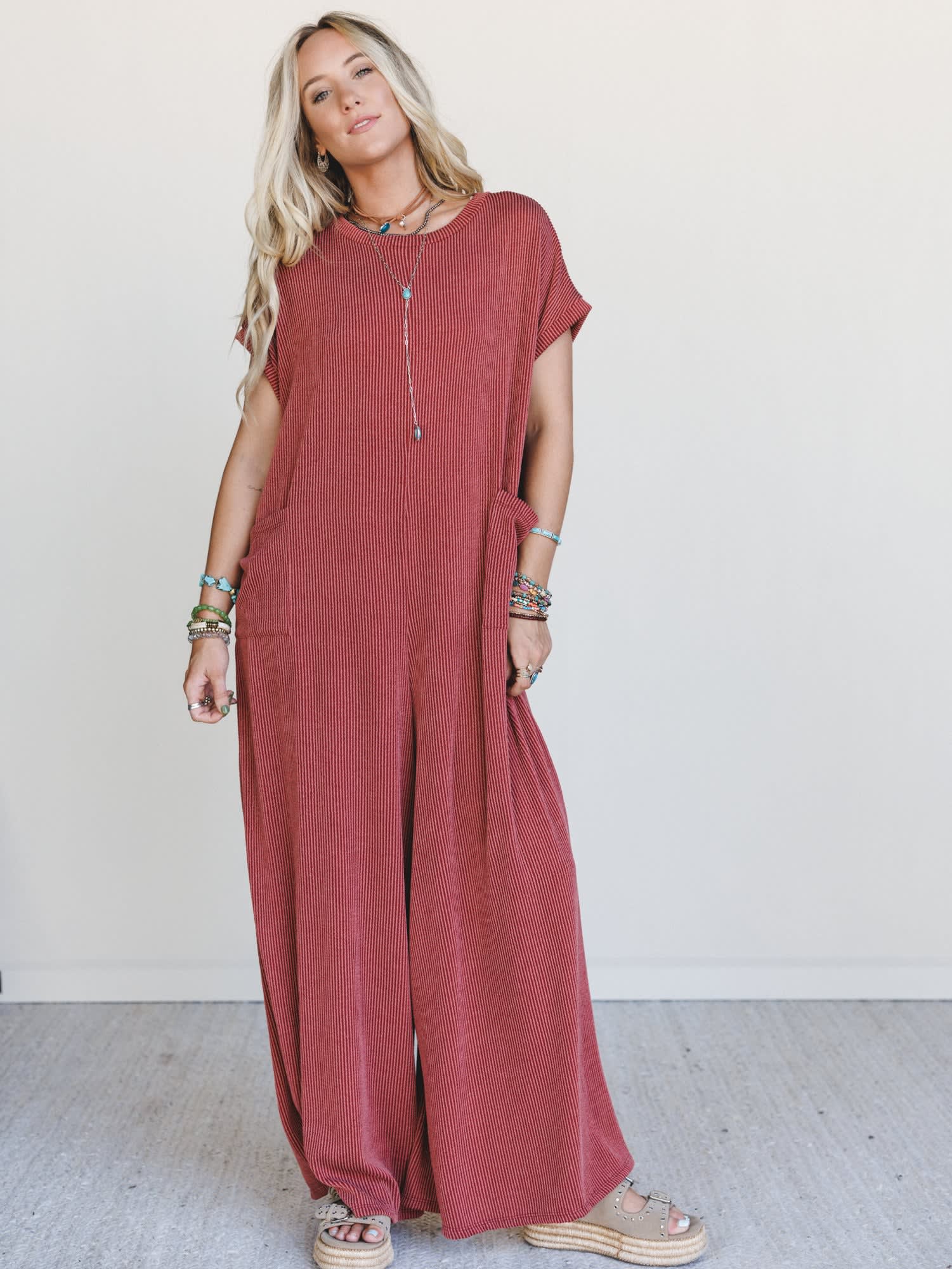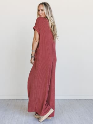 Step into your soft power with this richly hued jumpsuit—boho comfort meets coastal polish.