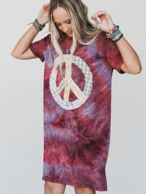 Channel your inner flower child in The Nest Peace And Tie Dye Tee Dress—a bold, relaxed-fit piece that brings retro energy and boho charm wherever you go. Made for dancing under the sun, lounging in style, or layering for fall festivals.