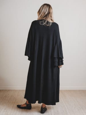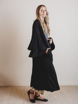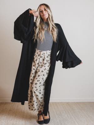 Float through fall and winter in effortless layers with the Radiant Ruffles Duster Cardigan — a cozy yet statement‑making piece that instantly elevates any outfit. Long, flowing, and soft, this cardigan is the perfect balance of boho ease and chic detail.