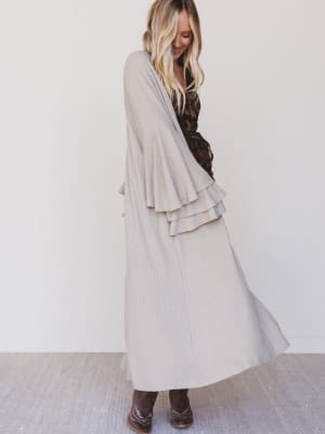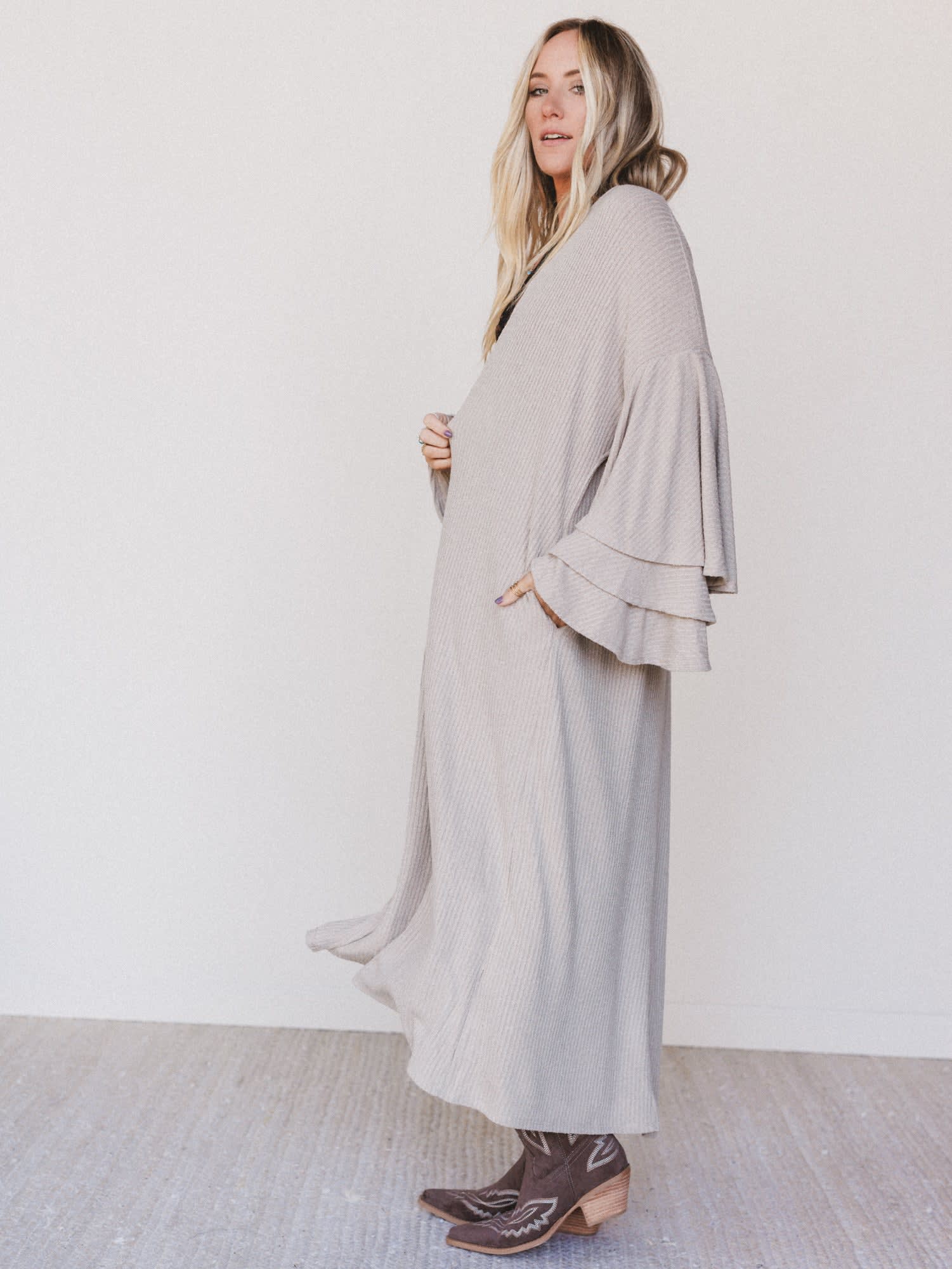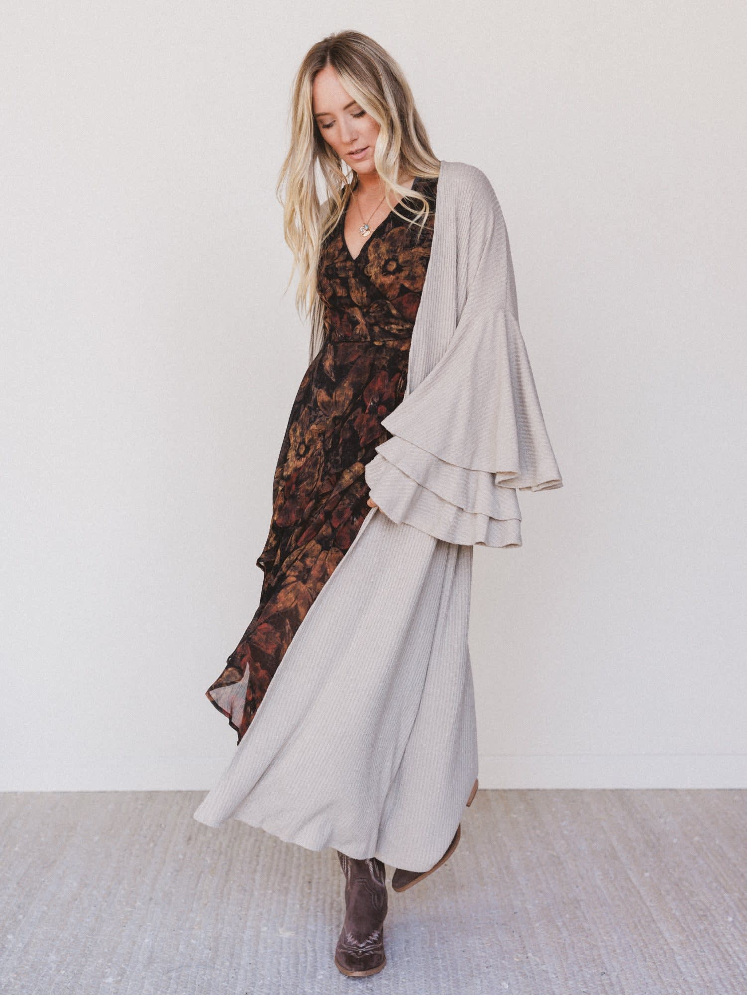 Float through fall and winter in effortless layers with the Radiant Ruffles Duster Cardigan — a cozy yet statement‑making piece that instantly elevates any outfit. Long, flowing, and soft, this cardigan is the perfect balance of boho ease and chic detail.