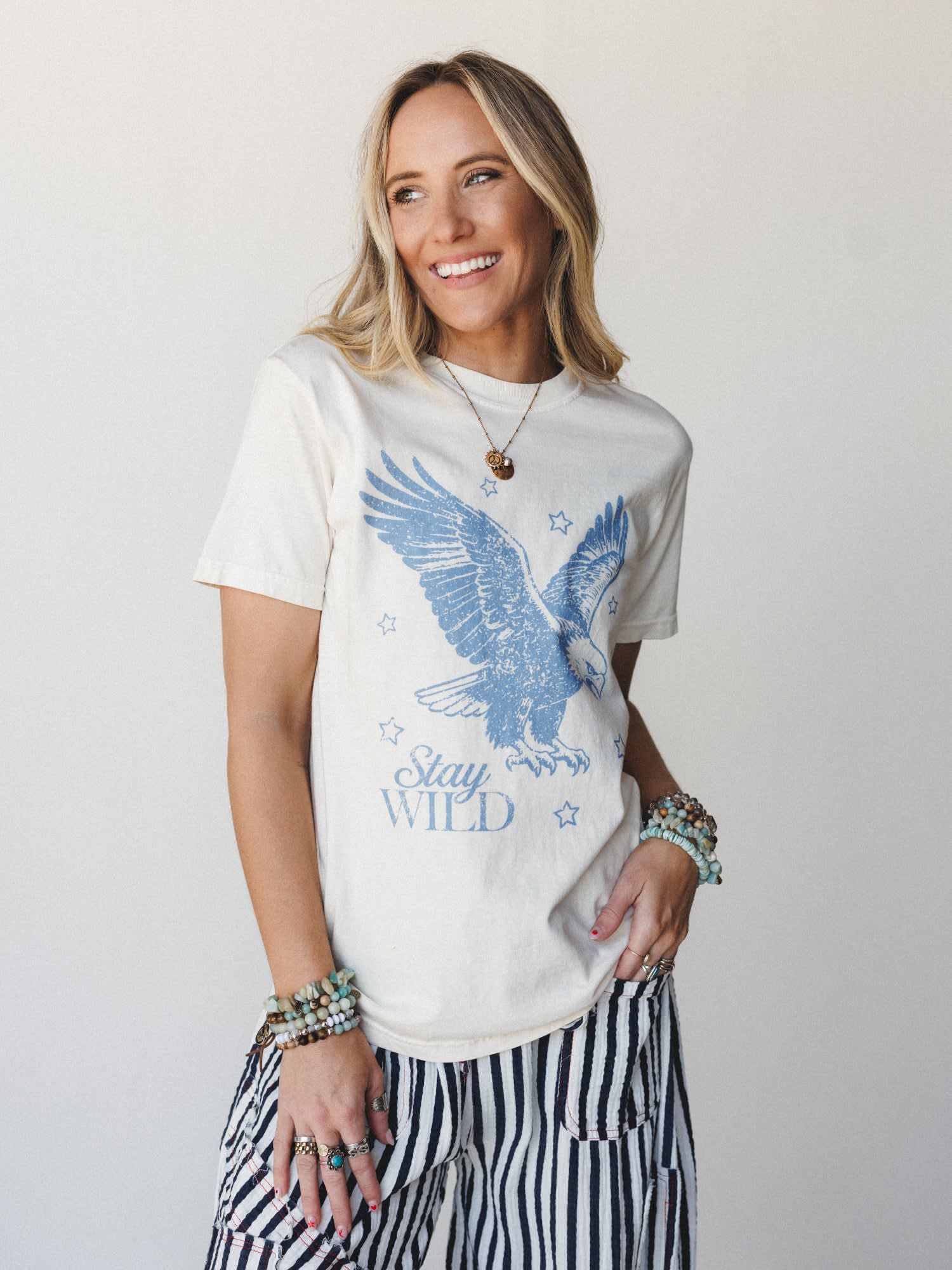 When you're putting together the perfect country concert outfit or casual festival look, this vintage-inspired graphic tee brings that free-spirited energy you've been searching for. The soaring eagle design with stars captures your wild heart and bohemian style perfectly.