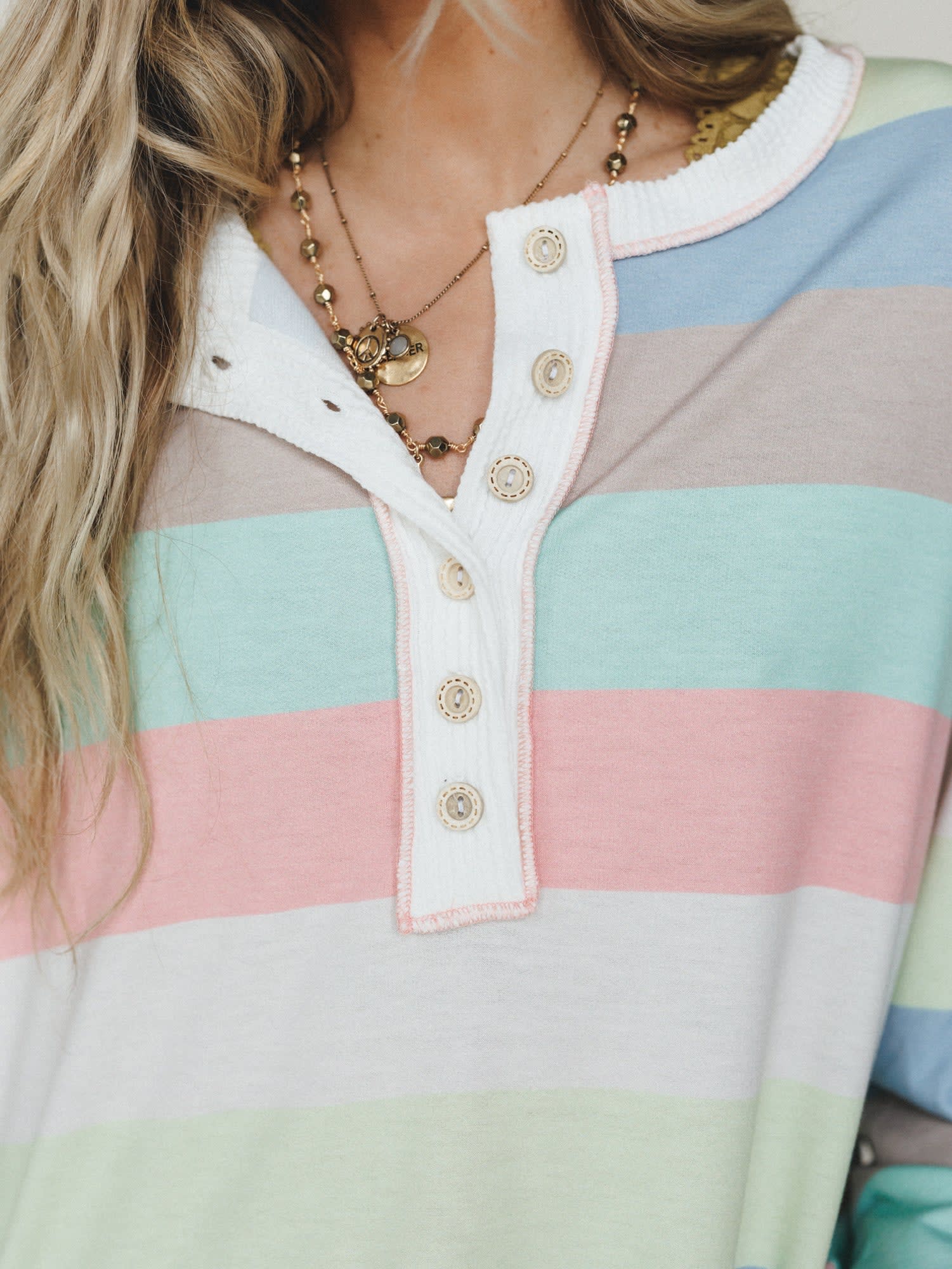 • Bright and breezy stripes in a mix of soft sorbet tones