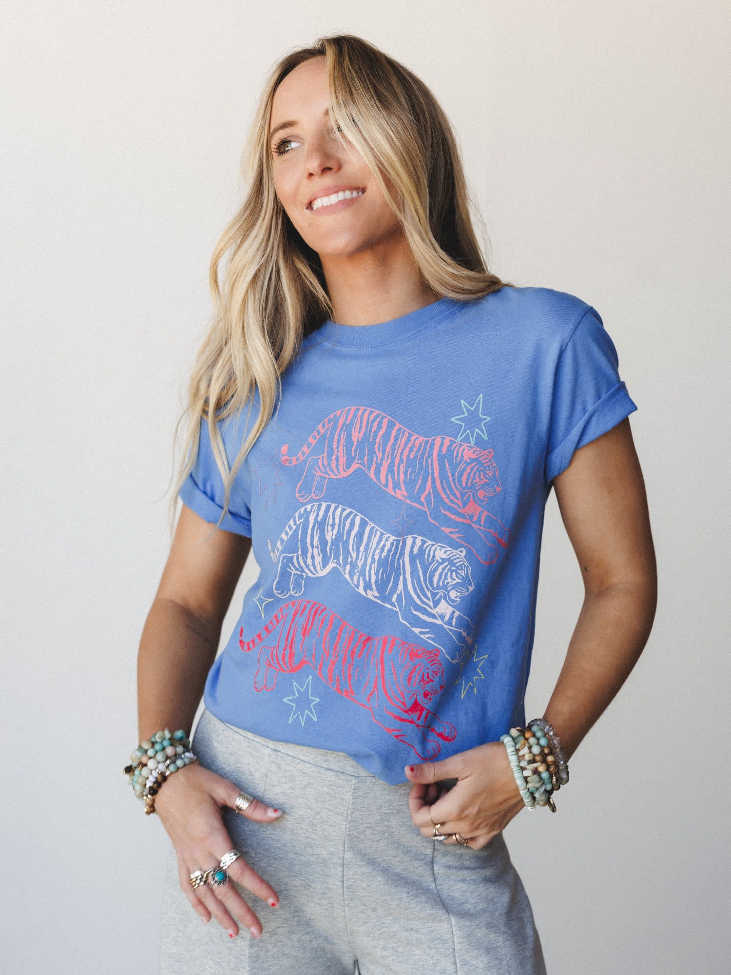Perfect for your next festival outfit or coffee date, this bohemian fashion staple brings wild energy to any boho chic wardrobe. The tiger graphic with celestial stars creates an instant conversation starter that captures your free-spirited style.