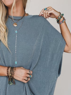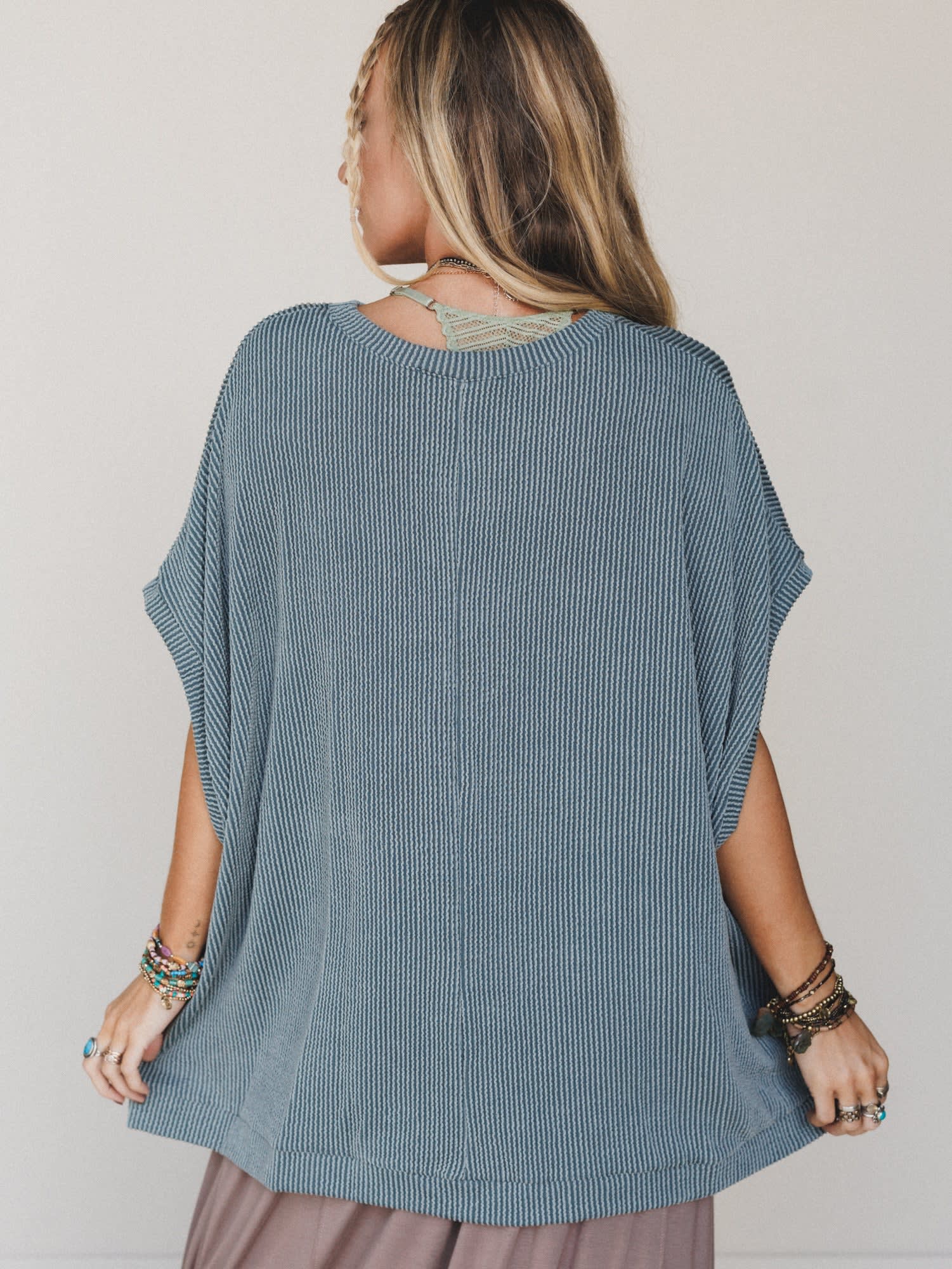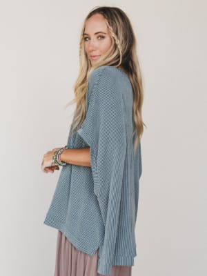 • Features The Nest Moon Glow Texture Knit Top, a breezy poncho-style knit with subtle diagonal ribbing and an easygoing drape in a calming seafoam tone