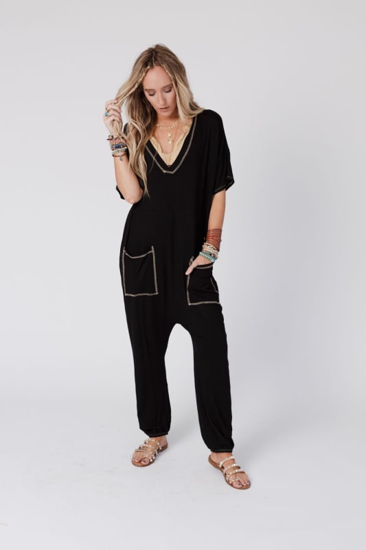 You're going to LOVE The Perfect Long Sleeve Harem Jumpsuit because it's perfectly boho and comfy!