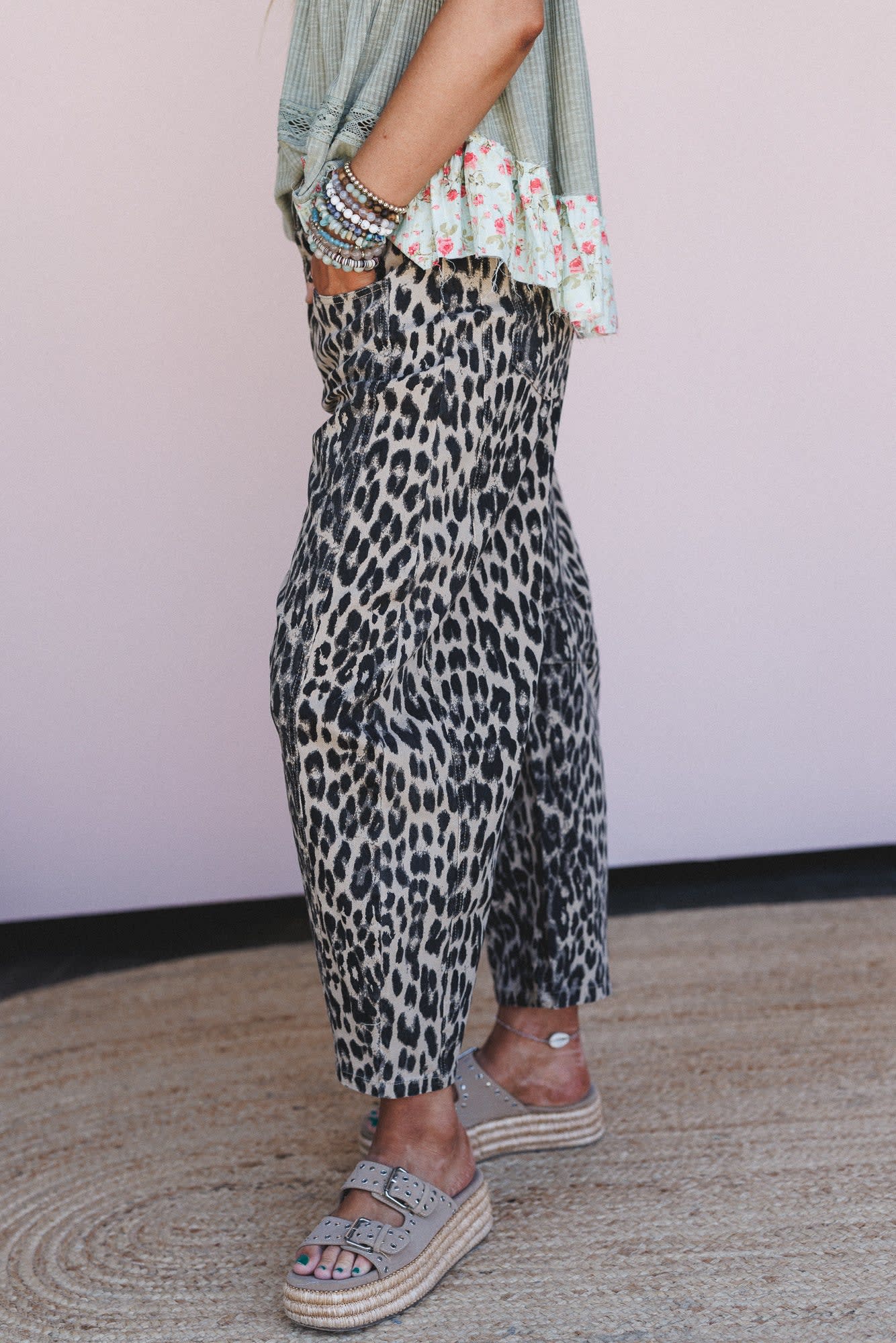 Thrill Seeker Leopard Barrel Jeans (Sized)