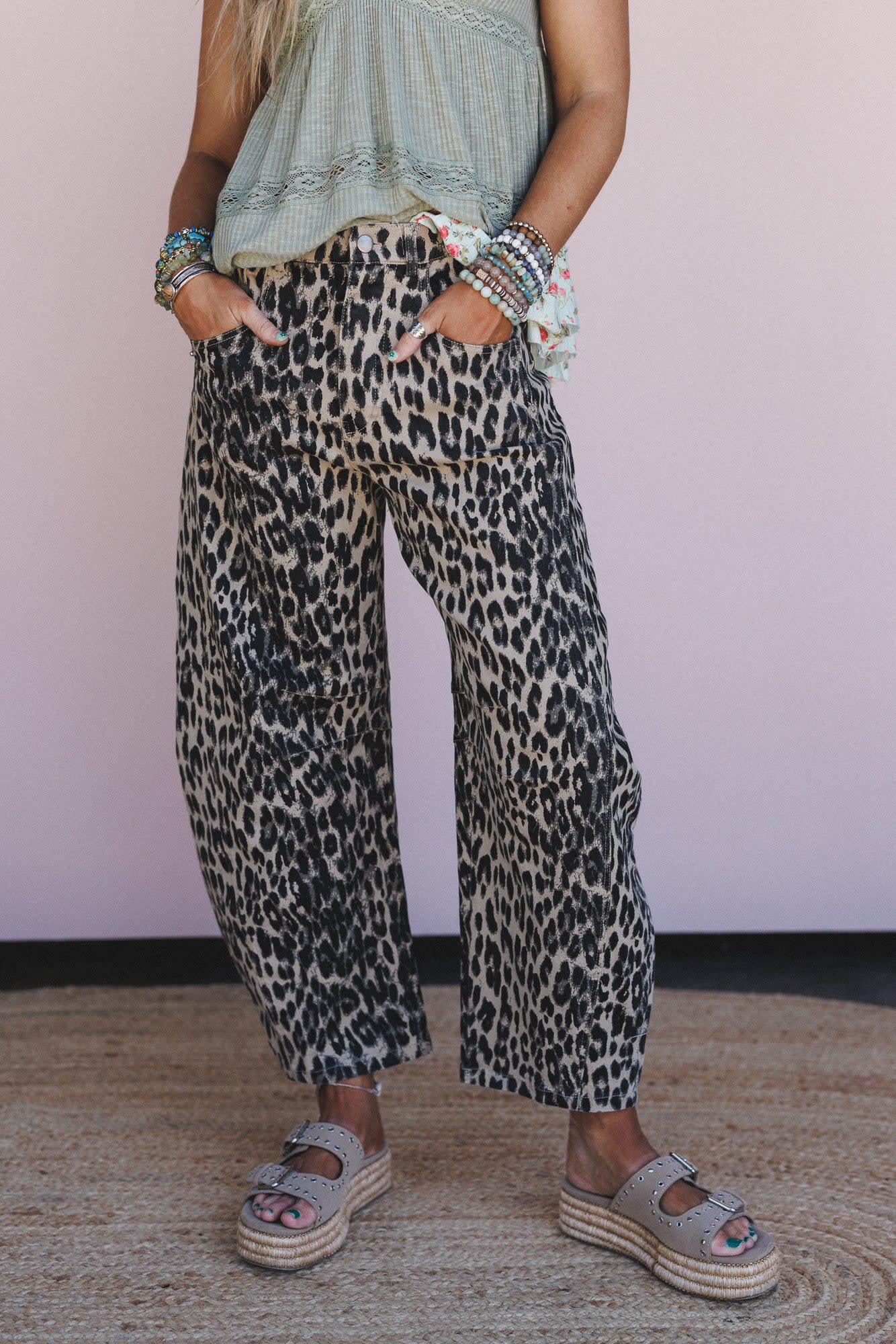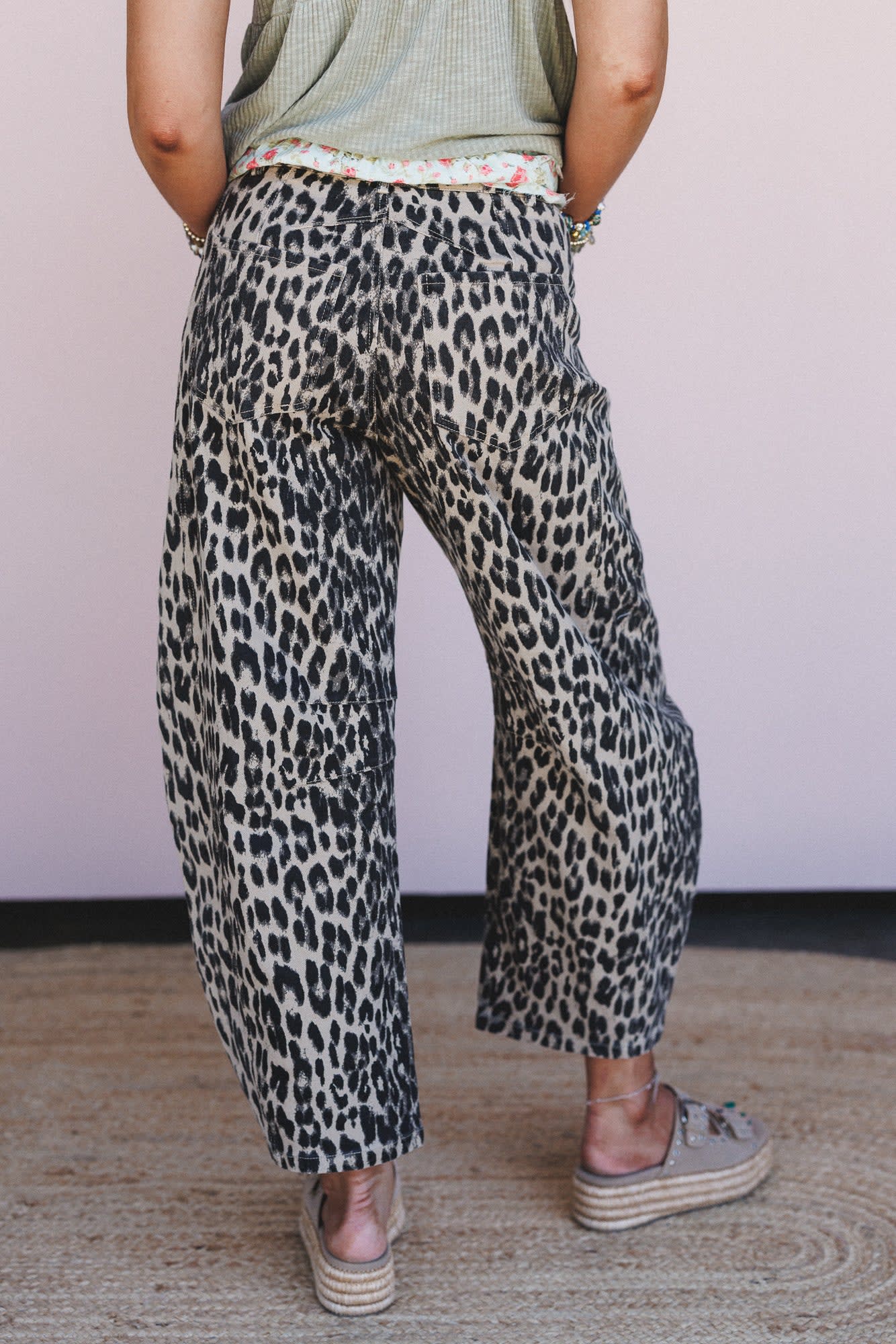 Get ready to turn all the heads in these barrel-shaped jeans in a rich and lively leopard print.