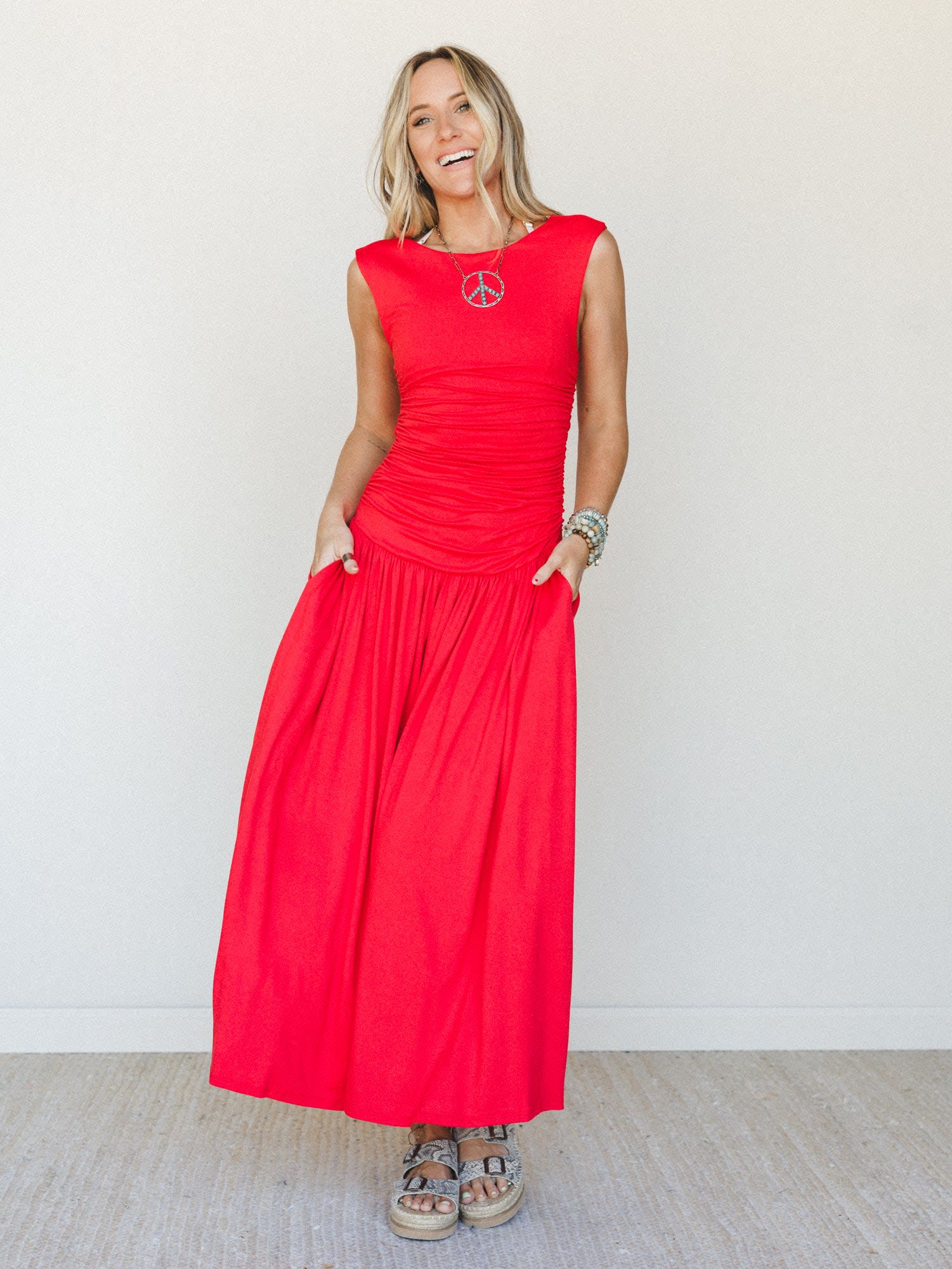 • The dress features a comfortable tiered silhouette with long sleeves and drawstring waist detail for adjustable fit.