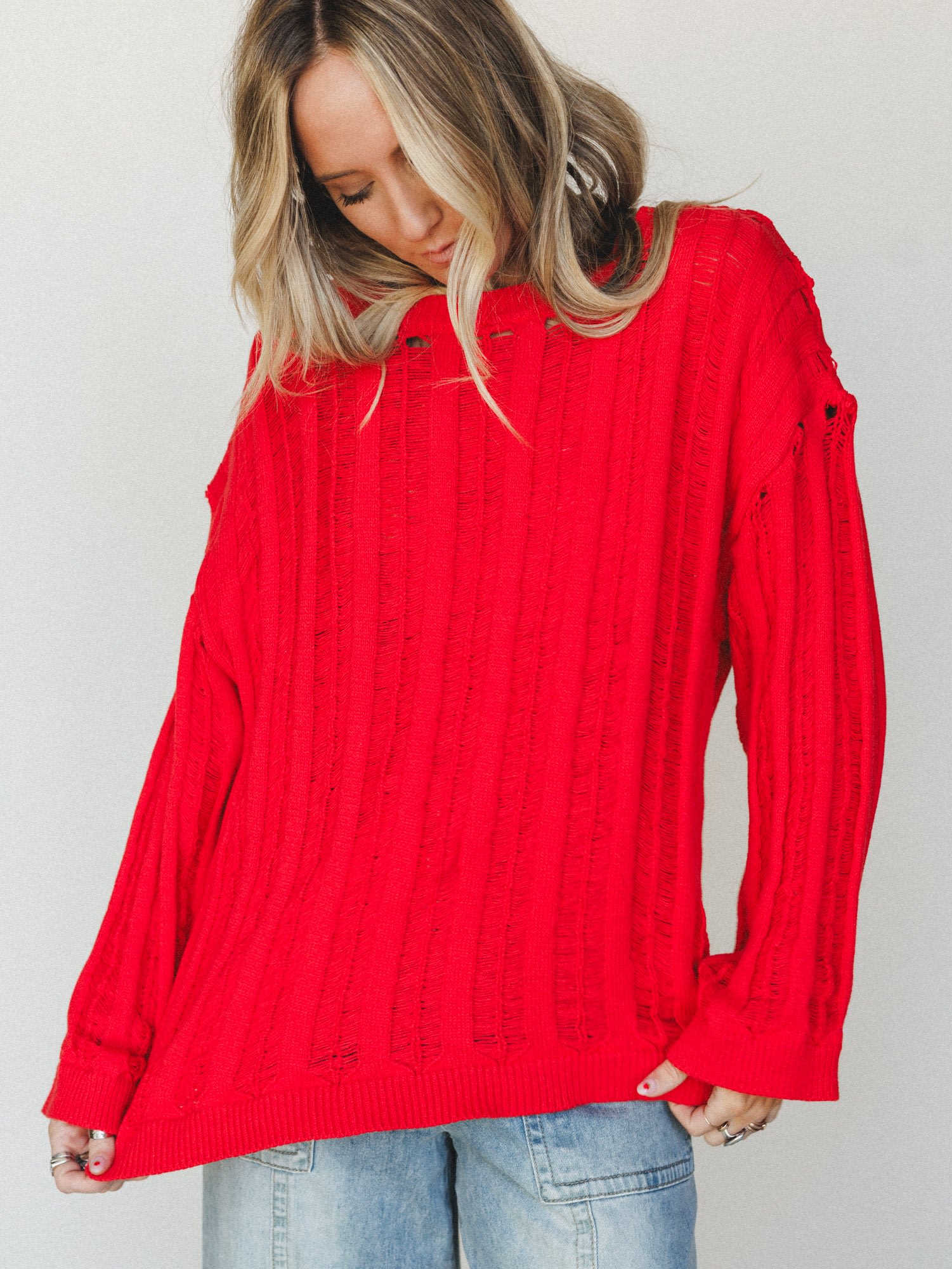 • Soft knit sweater offers relaxed comfort with ribbed detailing at cuffs and hem for easy layering.