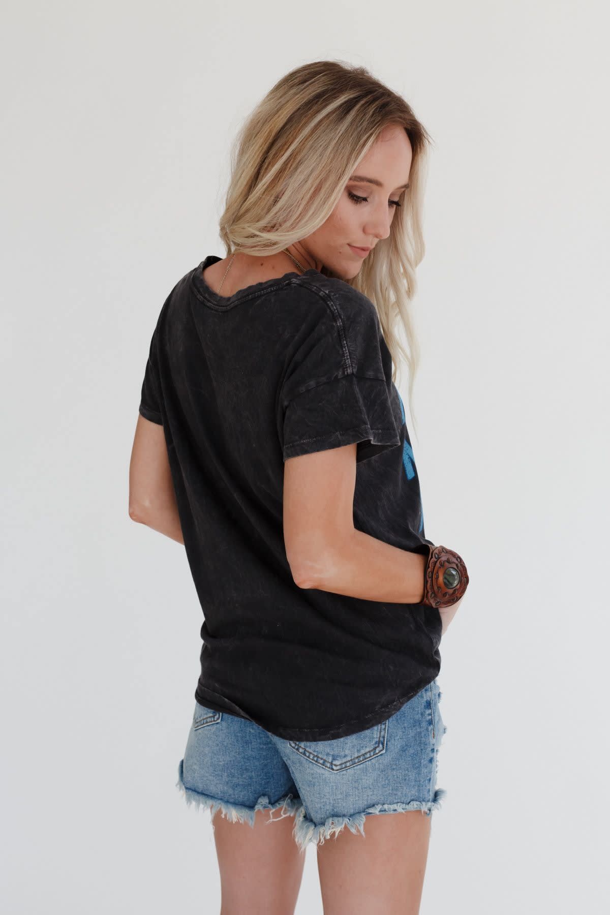 A tee for all the cool Moms! This classic graphic tee features a lived-in wash with distressed bold lettering and a lightning bolt. This tee is the perfect fit and feel that paired with your favorite bottoms such as leggings or favorite denim.