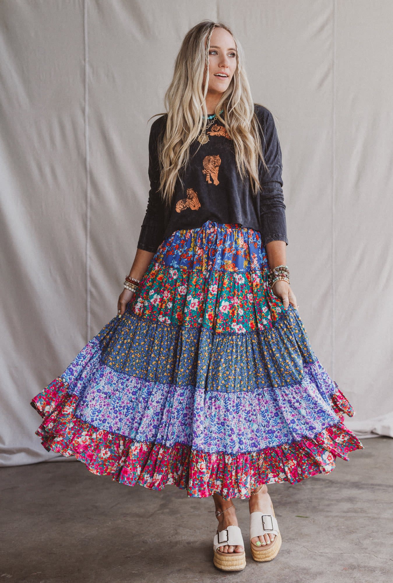 This oversize boho graphic tee shows off your inner wild side with roaming tigers.