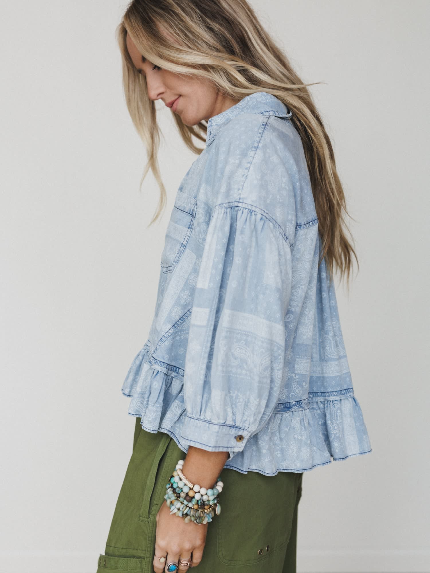 - Ruffle hem detail for a feminine, boho chic finish