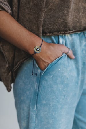 A little charm goes a long way. The Tiny Magic Adjustable Bracelet is your daily dose of boho protection and style, featuring a woven evil eye centerpiece on a sleek, navy cord. Wear it solo or stacked for a look that's full of meaning and effortlessly cool.