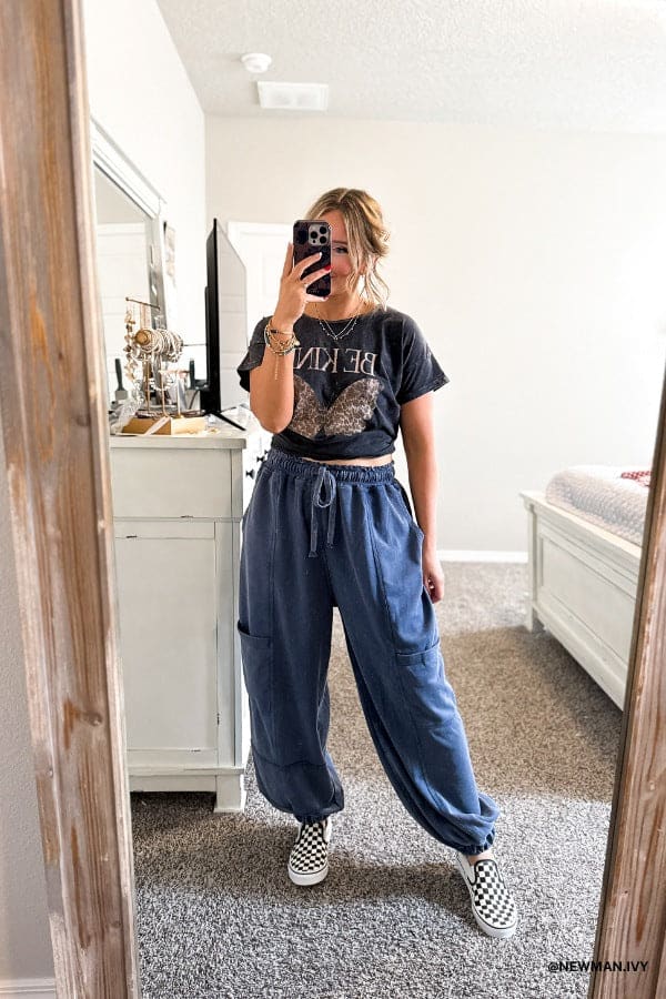 These boho joggers look amazing with graphic tees and sneakers for an elevated casual look.