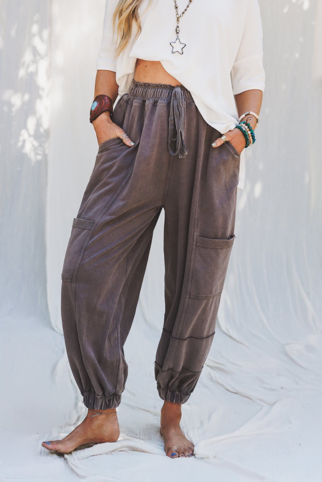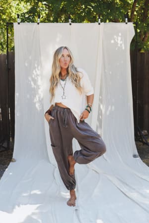 These boho joggers look amazing with graphic tees and sneakers for an elevated casual look.