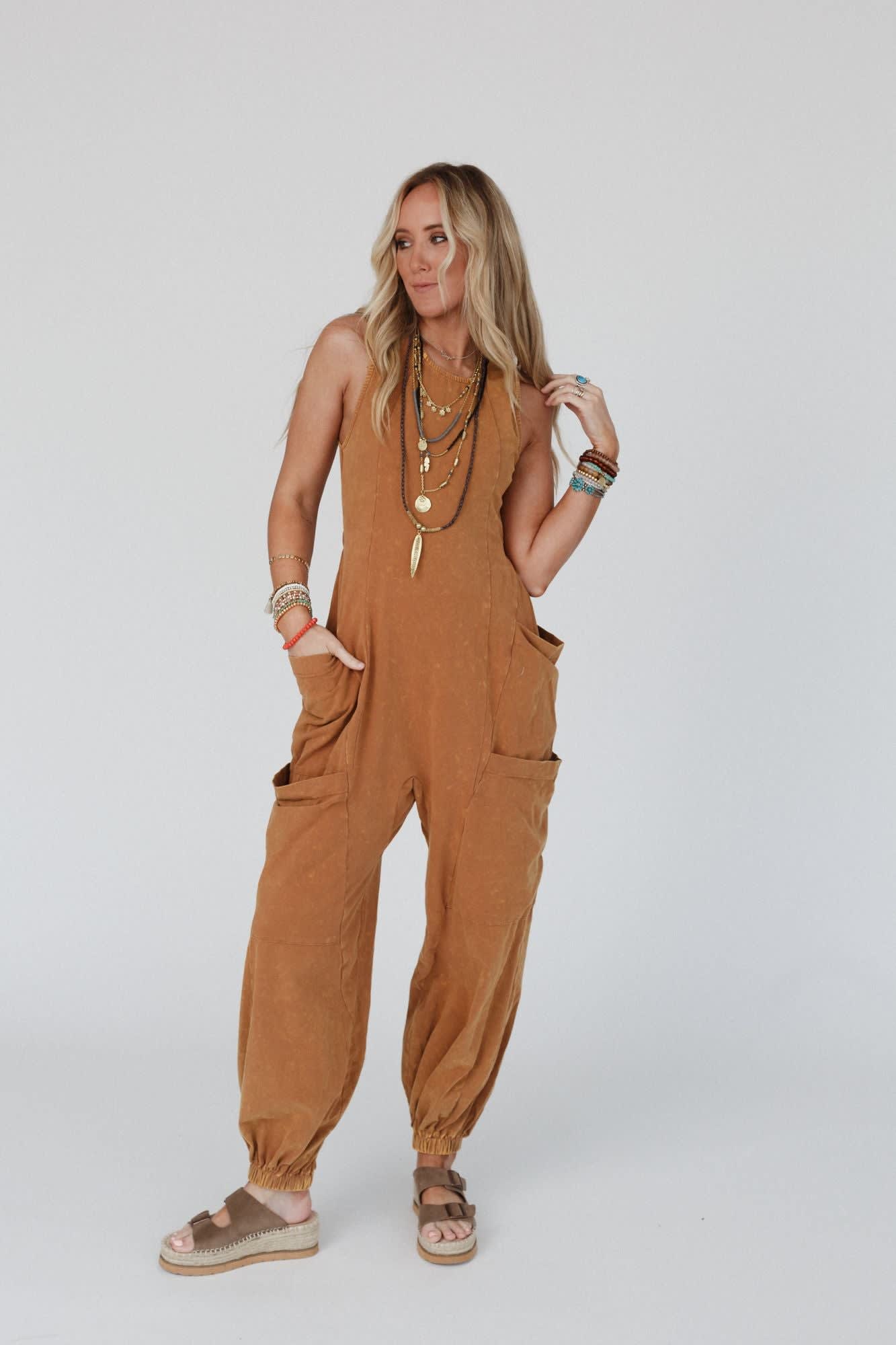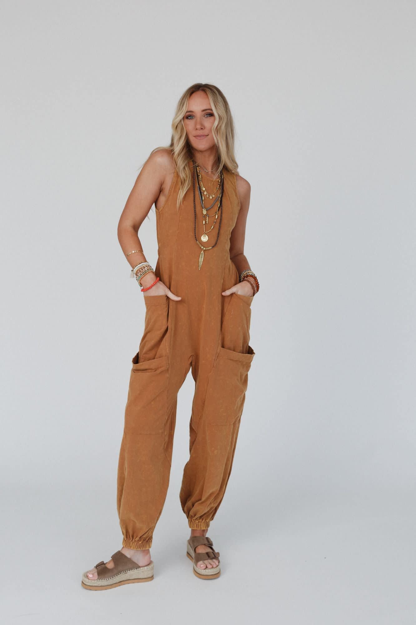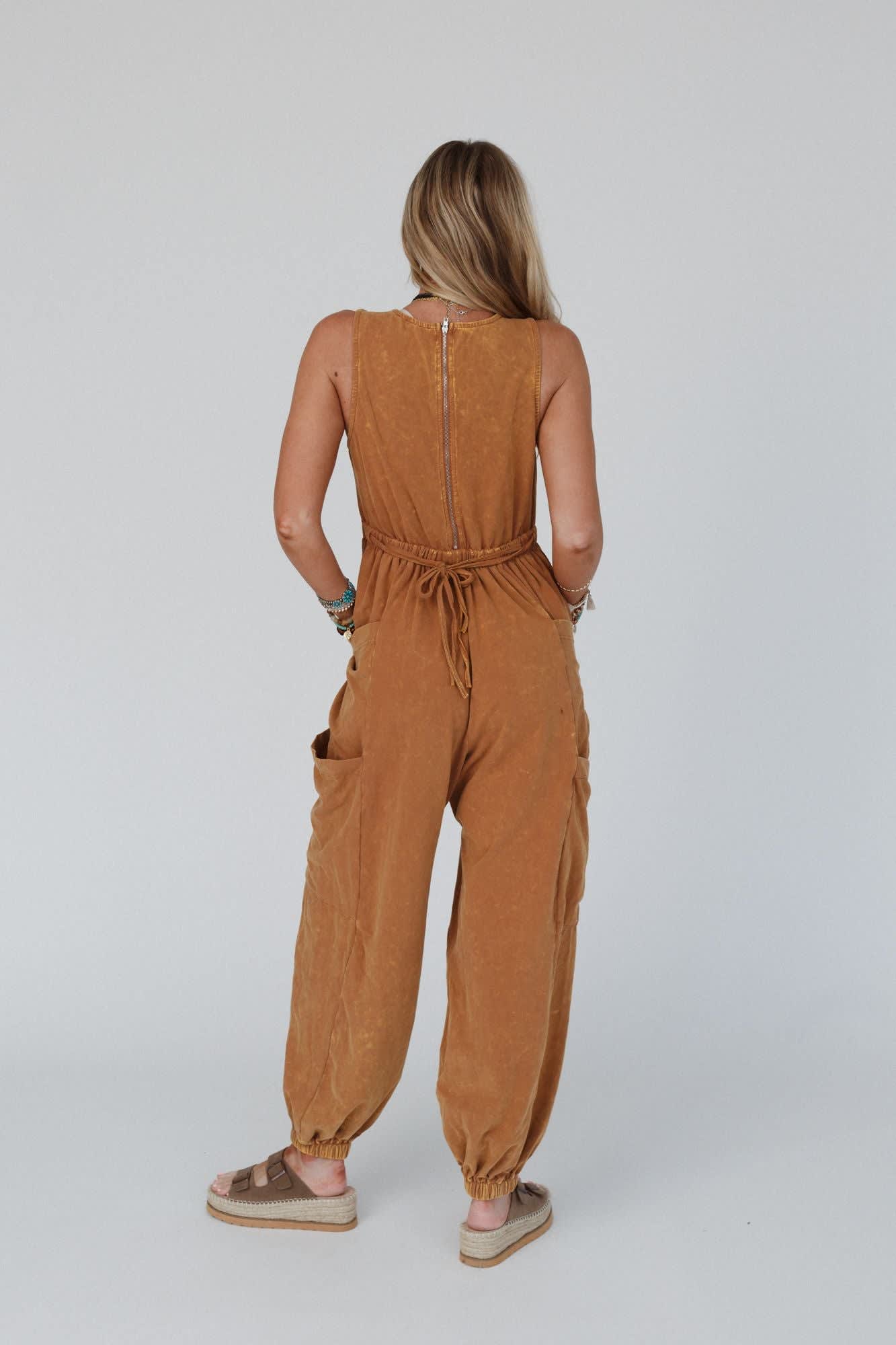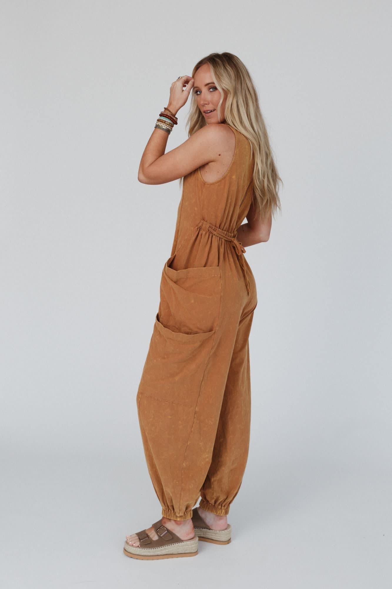 Get ready to look effortlessly boho-chic and ready-to-go in the Turning Point Washed Cargo Jumpsuit, it's sure to snag compliments!