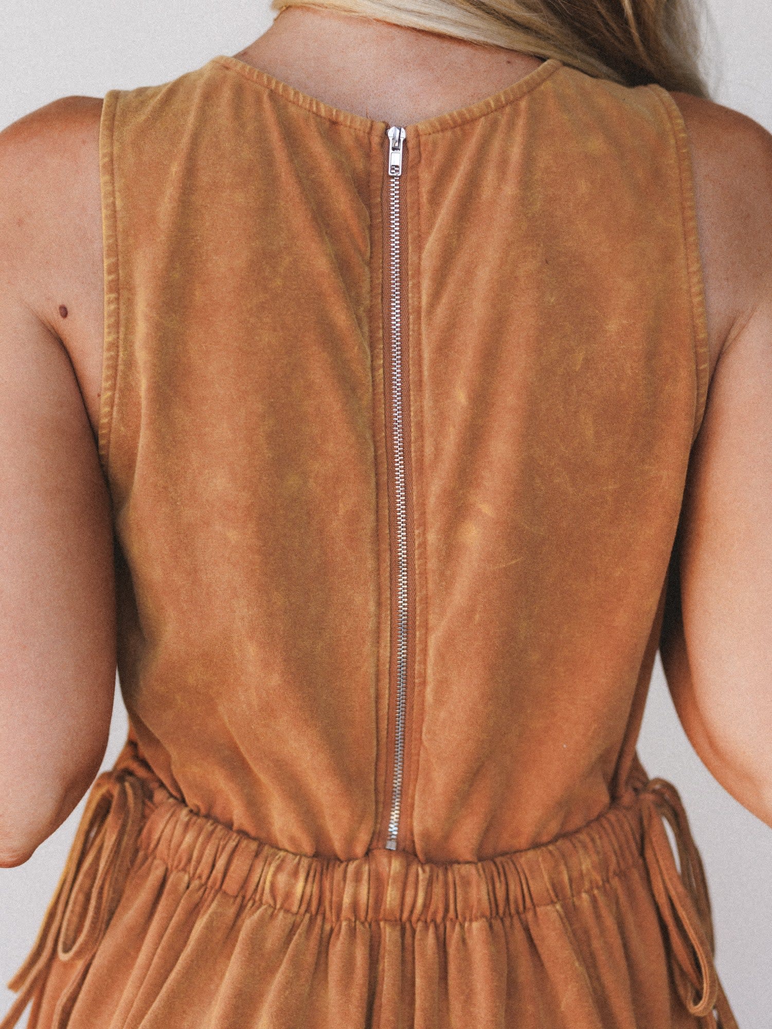 - Zip-up back closure along with an elastic back waistline and self-tie strap for the best fit