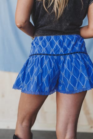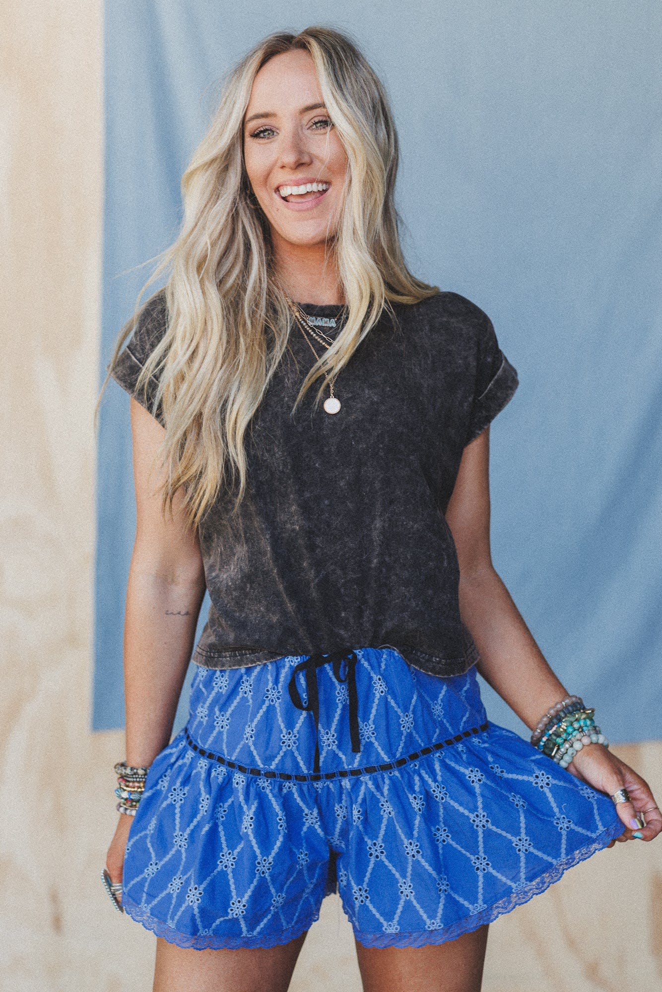 These wide leg blue shorts look amazing with graphic tees or poolside with a bikini top.