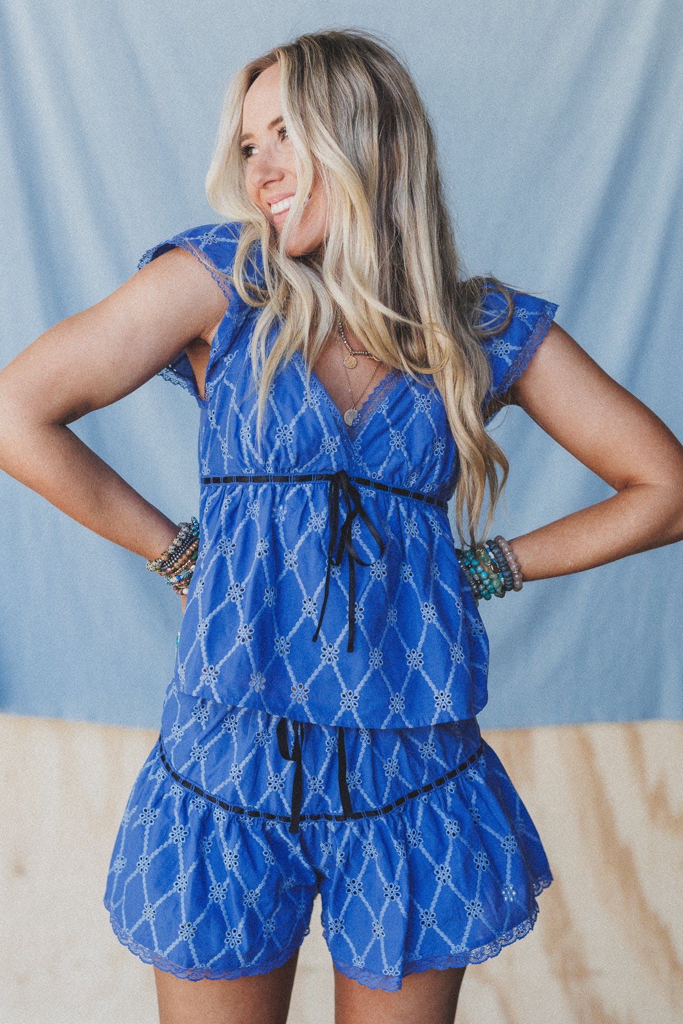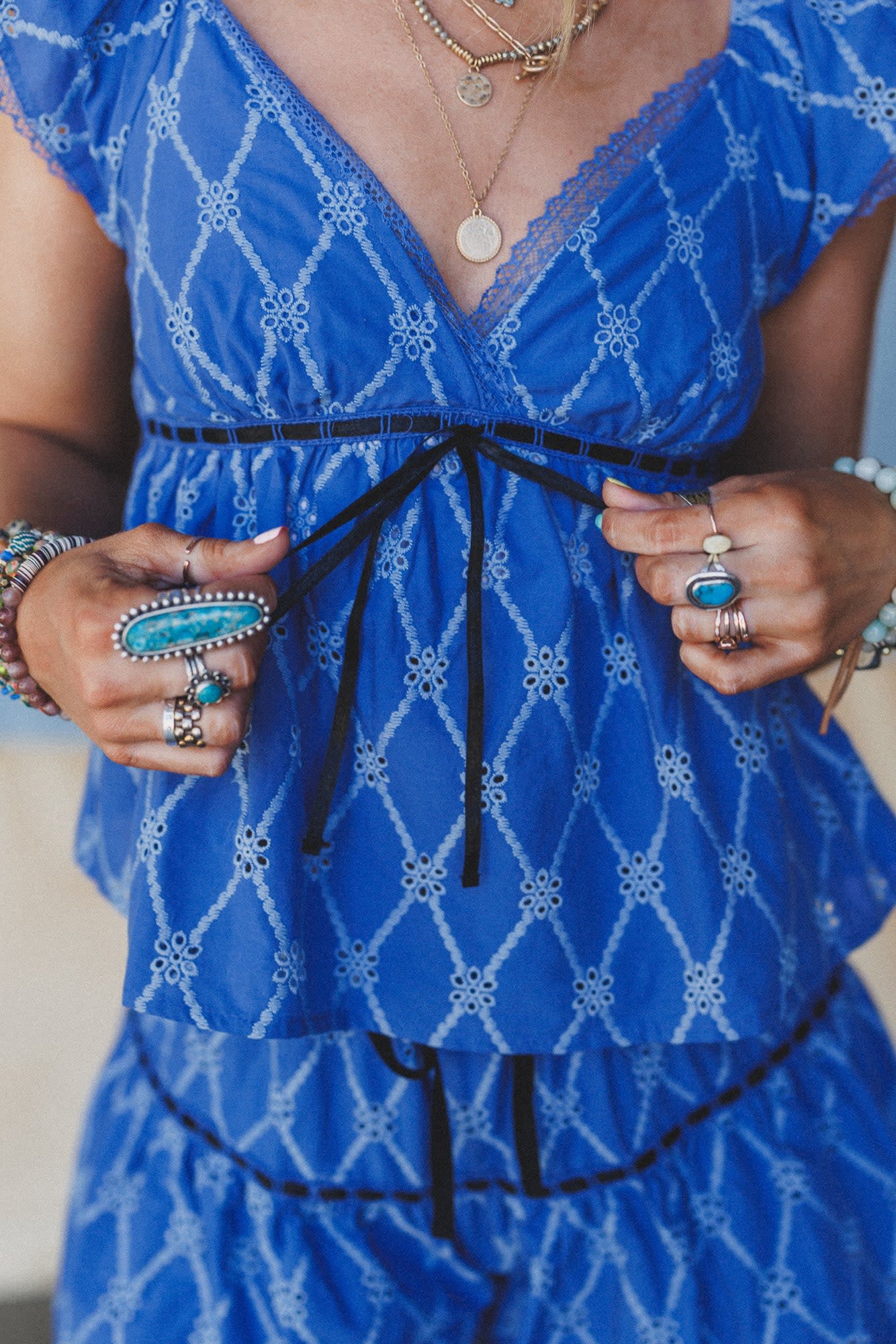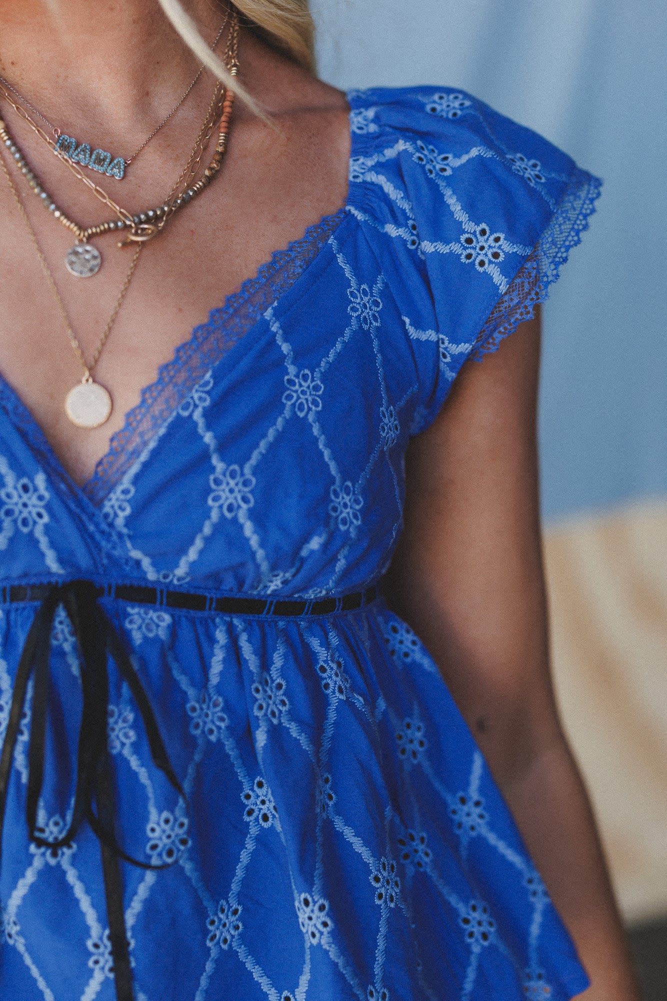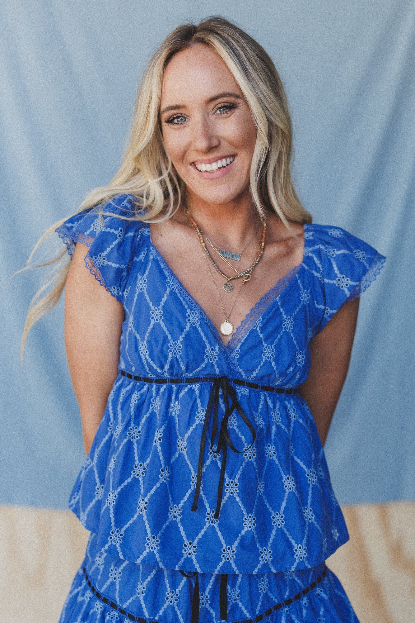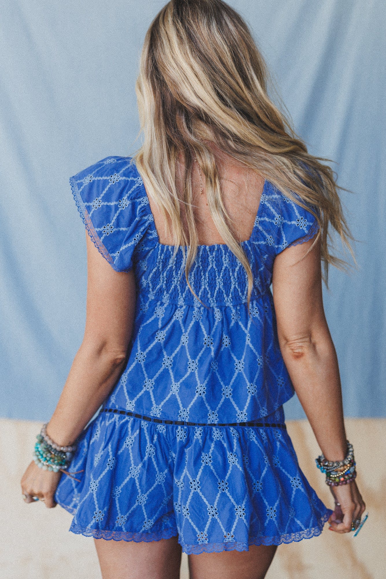 Pair this blue babydoll top with your favorite jeans or a flowy maxi skirt.