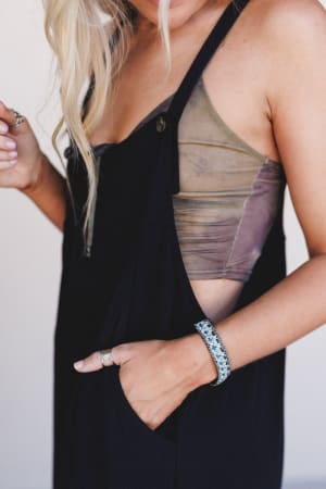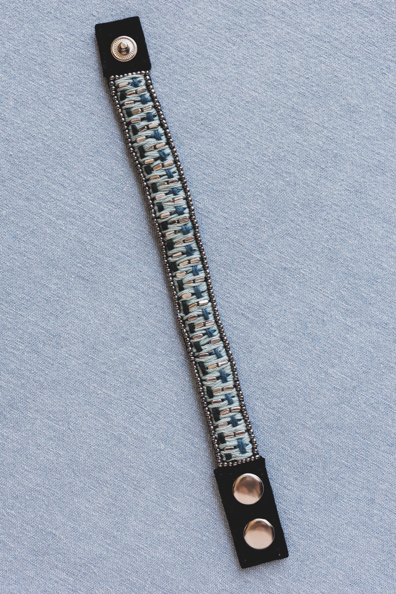 Add a little edge to your stack—this woven bracelet blends texture and shimmer for a look that feels both grounded and bold.