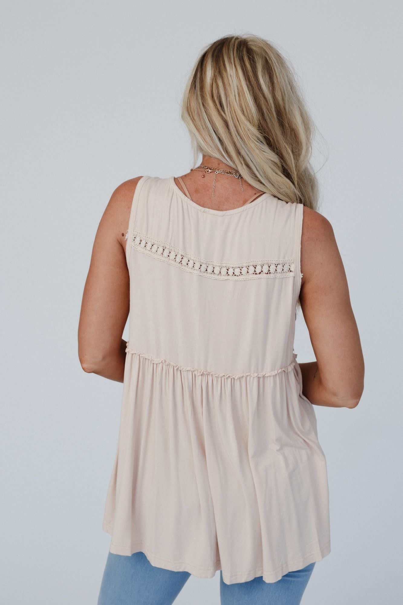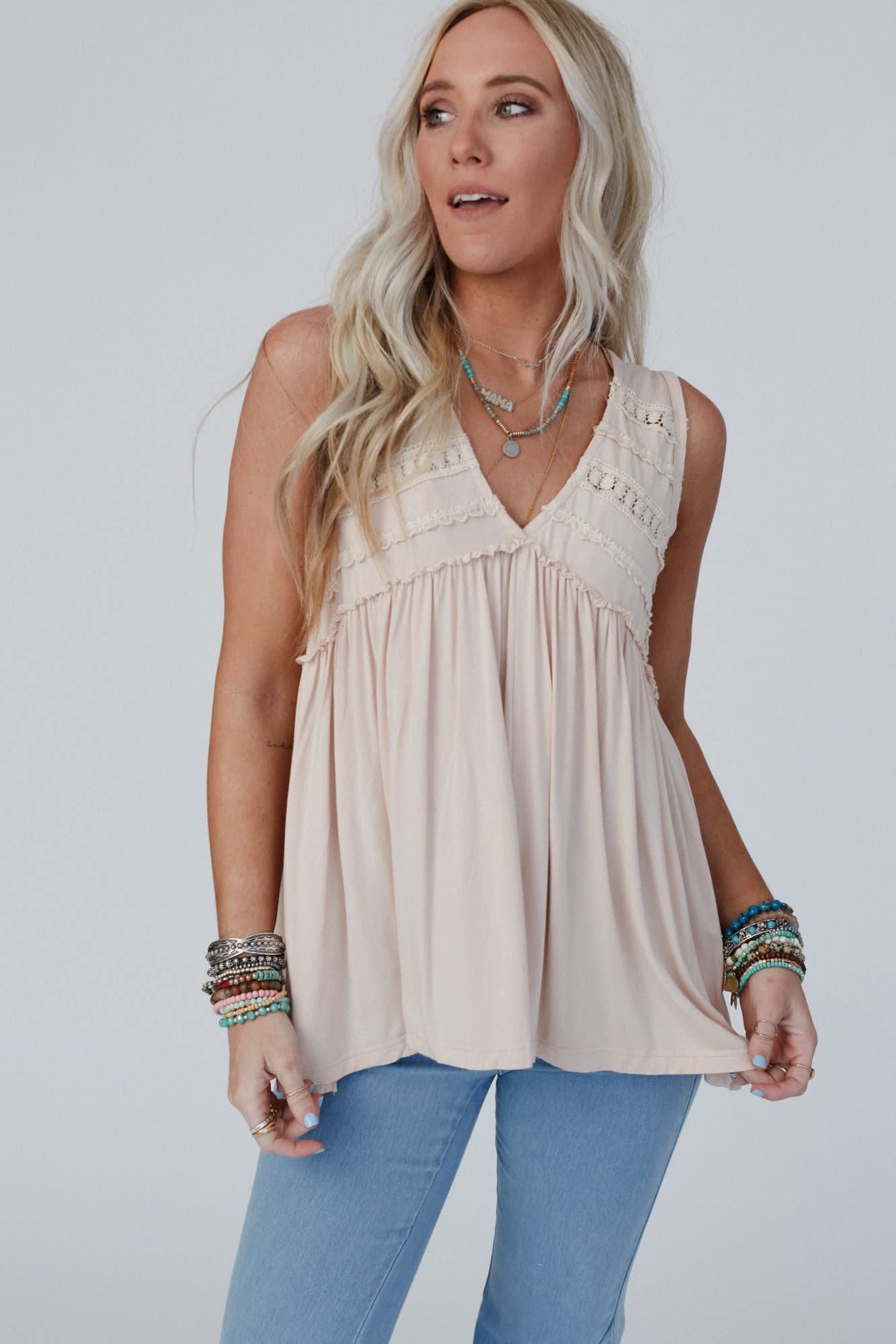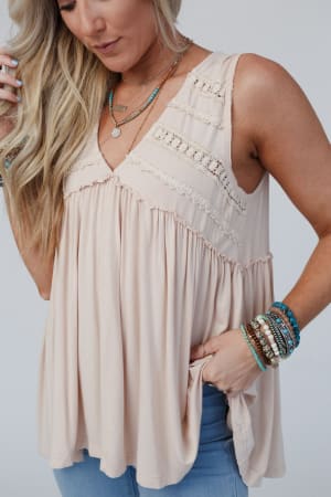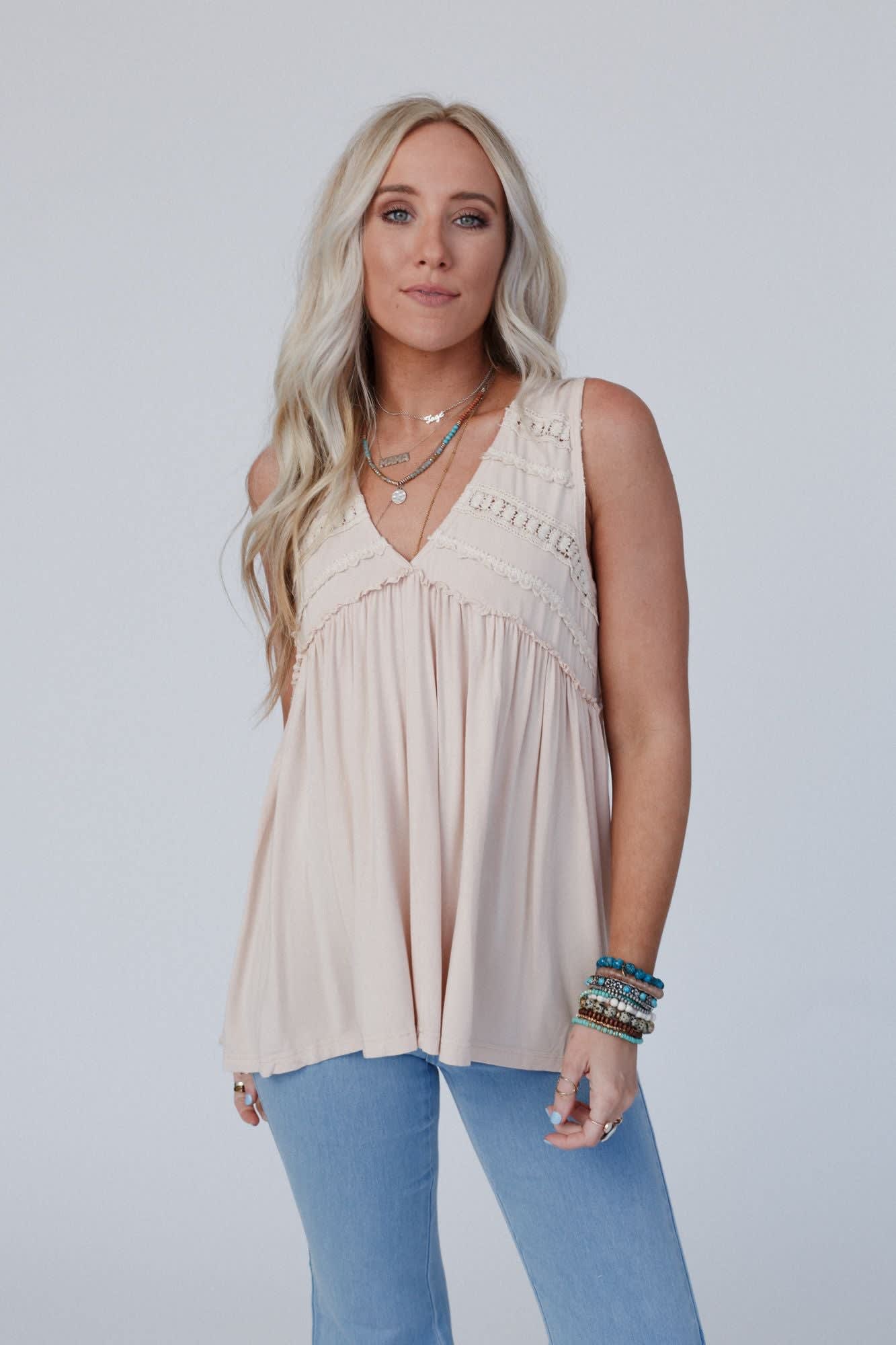 Soft, flowy, and effortlessly feminine, this boho knit tank is the kind of piece you’ll reach for on slow mornings and sunset dinners alike. Easy to dress up or down, it’s a staple for everyday styling with a romantic twist.