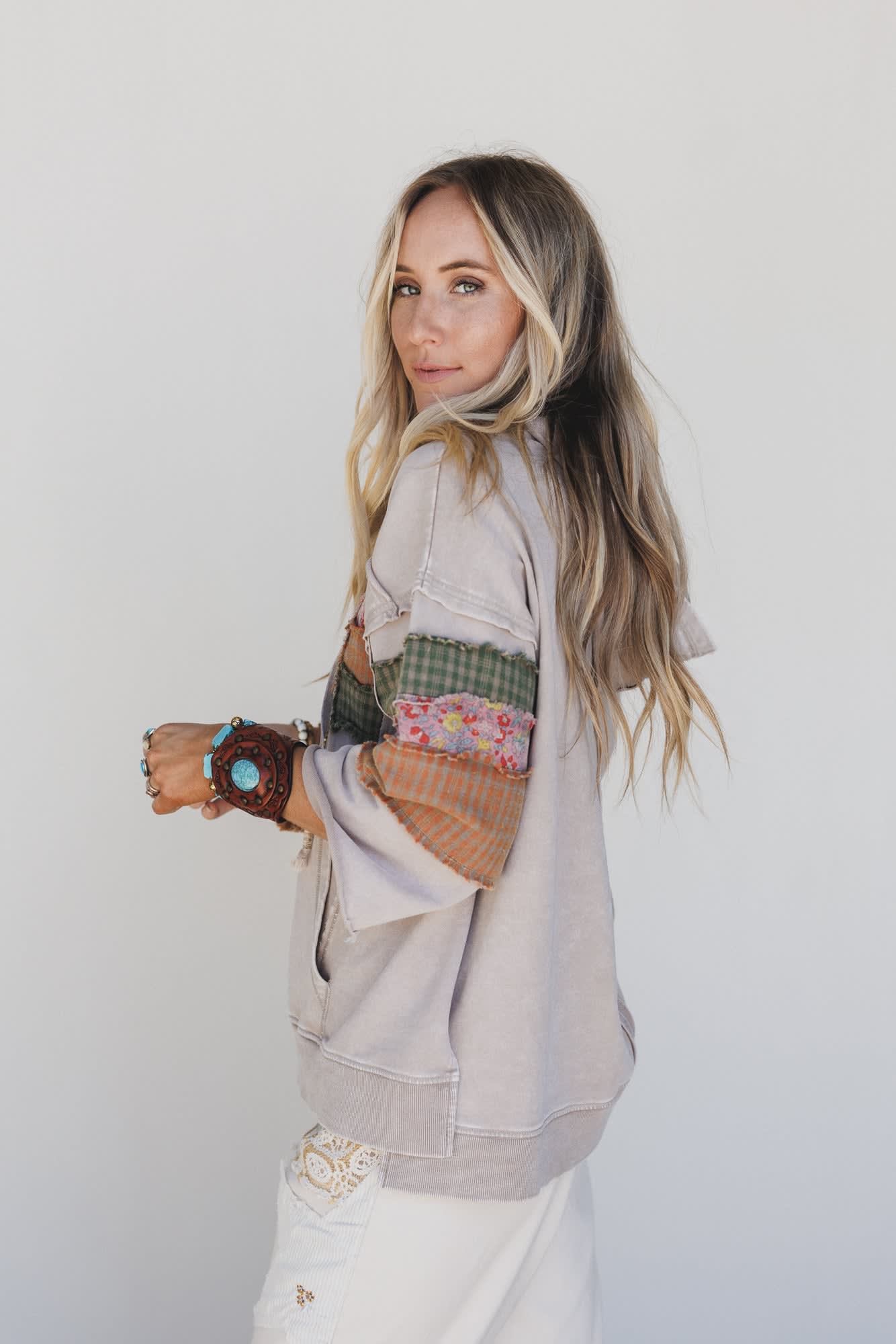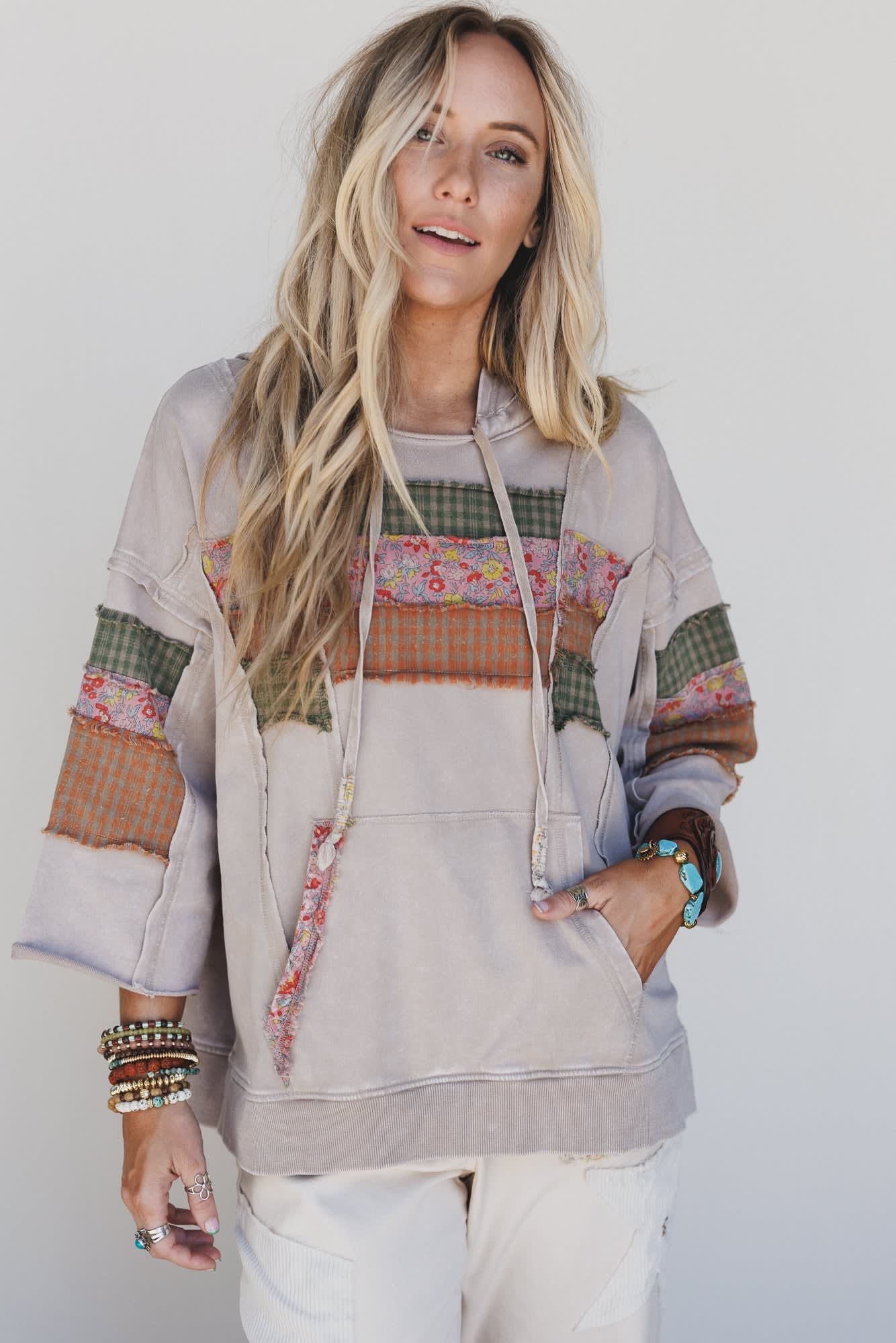A cozy-chic layer for cool mornings and firelit nights, this hoodie pullover blends comfort with a distinctly bohemian edge.