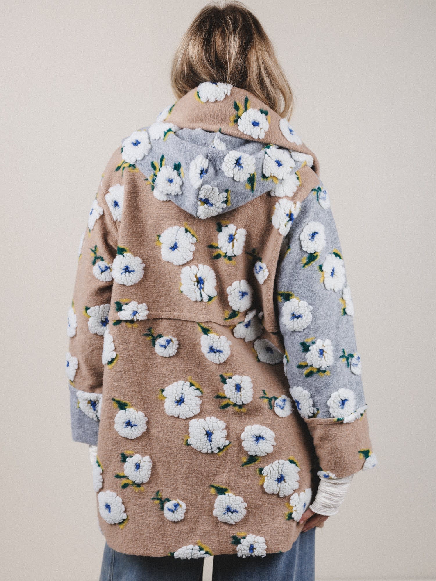 - Warm Intentions Jacket – A cozy floral sherpa coat with a dreamy split-color design in tan and blue. Features oversized buttons, roomy pockets, and serious cold-weather charm.