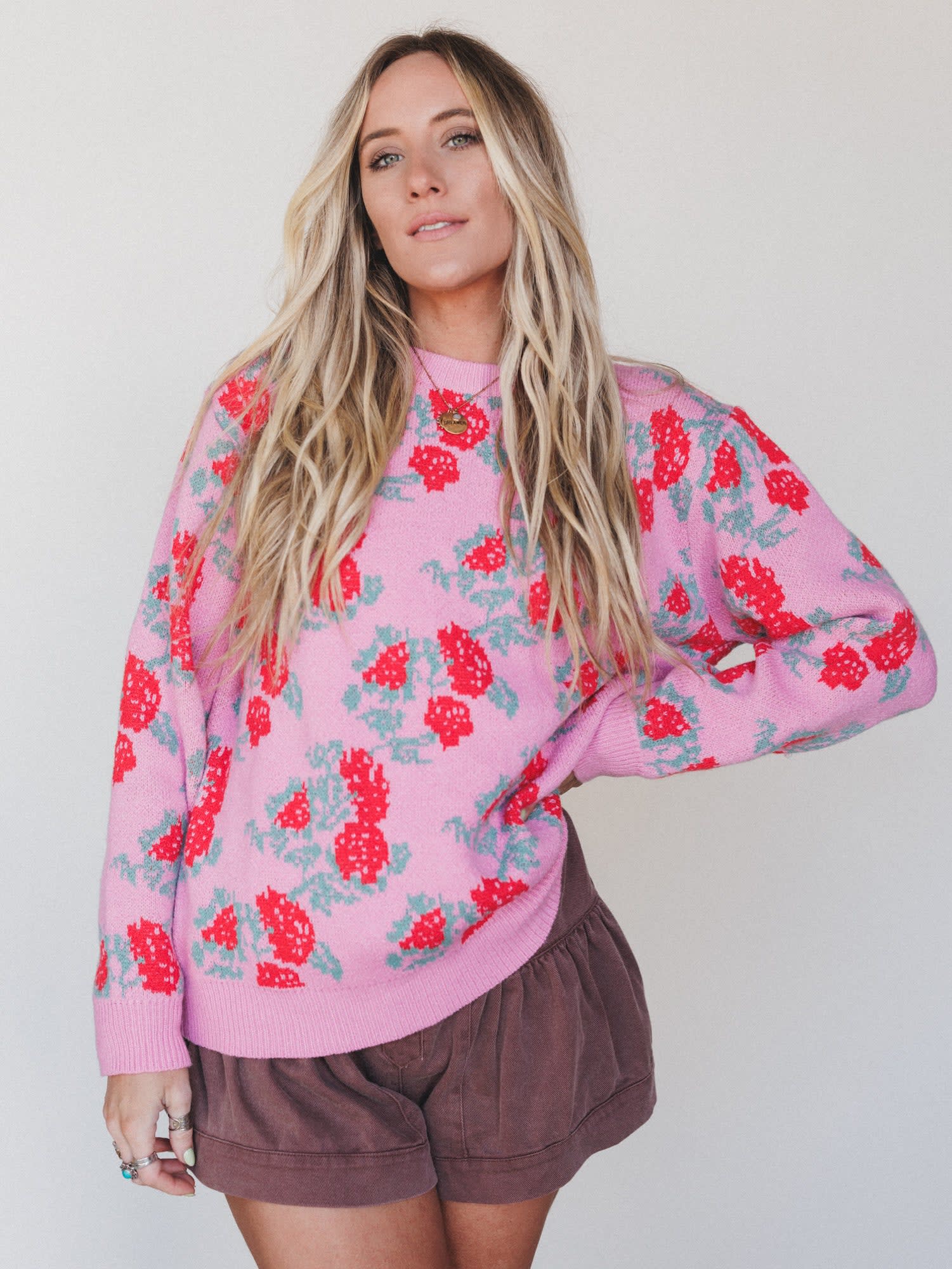 Turn up the charm in this bold and playful set, designed to warm hearts and brighten days. The Warm Love 2 Piece Bundle pairs a bright floral knit sweater with fan-favorite wide-leg shorts in a cozy corduroy—creating a layered look that feels both spirited and snug.