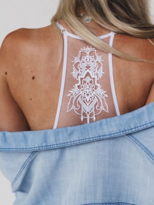 - The Tattoo Bralette adds just the right wow factor with its intricate embroidered back