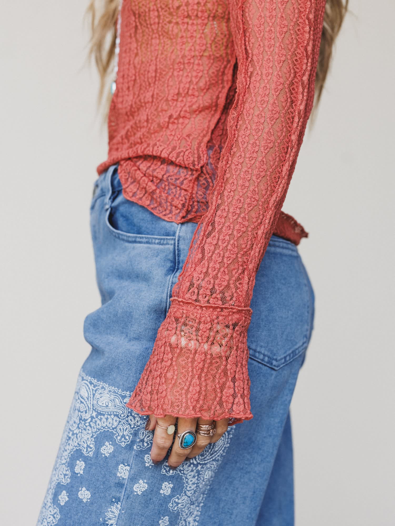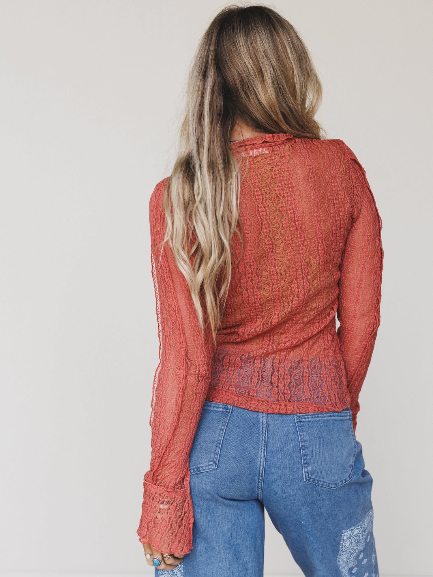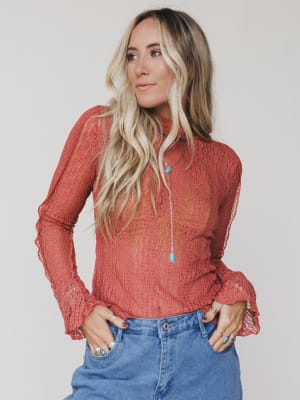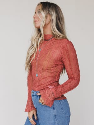 Bring a little western romance to your look with the Western Star Top. This cinnamon-hued lace beauty is all about delicate details and dreamy layering potential.