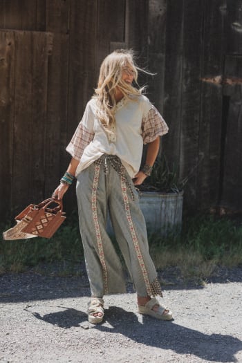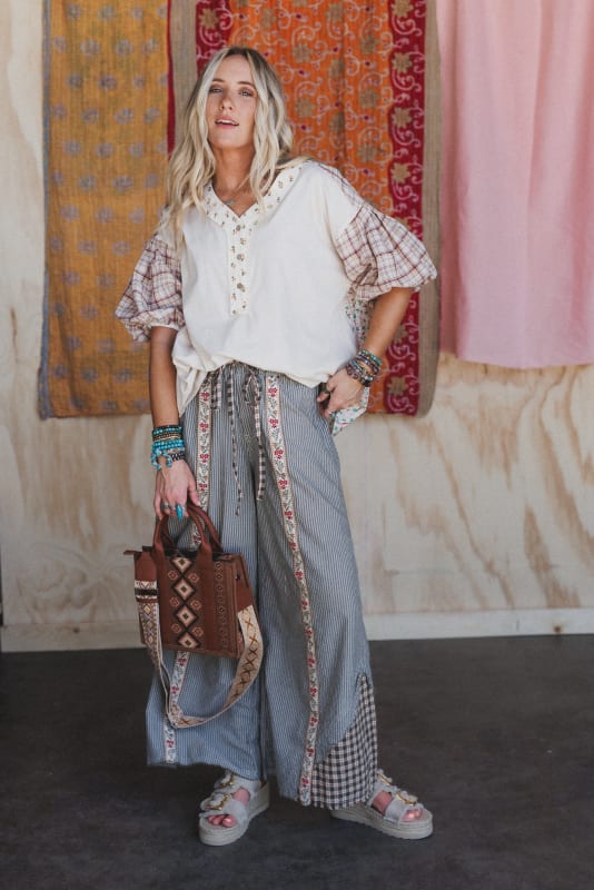 This unique bubble sleeve top looks amazing with bell bottom jeans and boots.