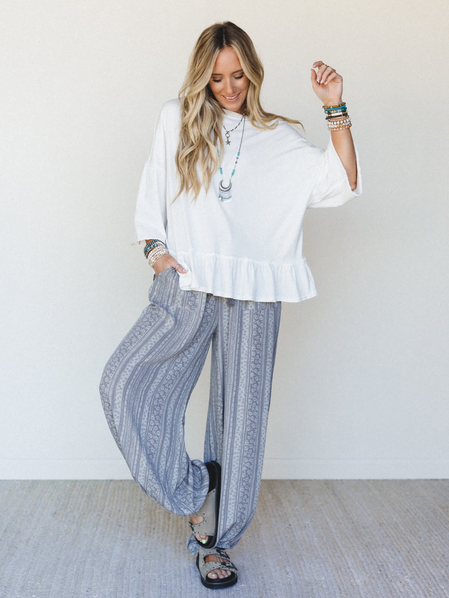 - Relaxed, oversized tee with a flowy silhouette for that effortless boho vibe