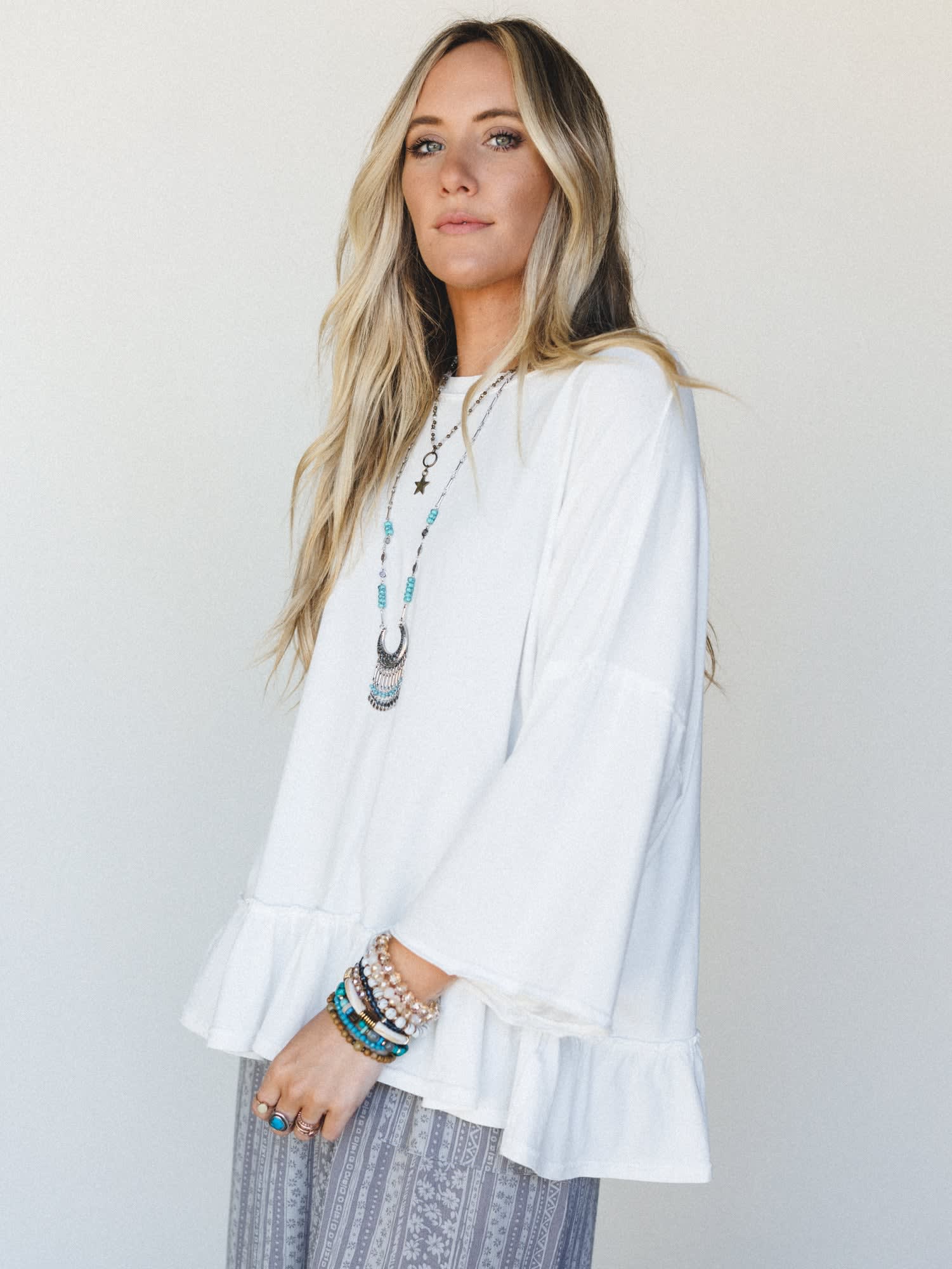 This is the kind of piece you’ll reach for when you want an easy answer to what to wear on a road trip or slow weekend day—flowy, feminine, and effortlessly put together. The soft drape and off white hue give it that dreamy, boho feel you can style a dozen different ways.