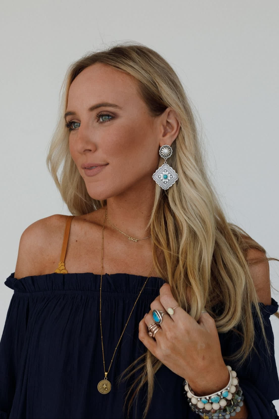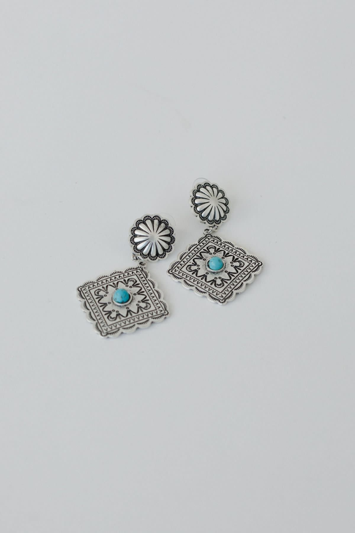 These turquoise-accented earrings are the perfect partner to any western look in your closet.