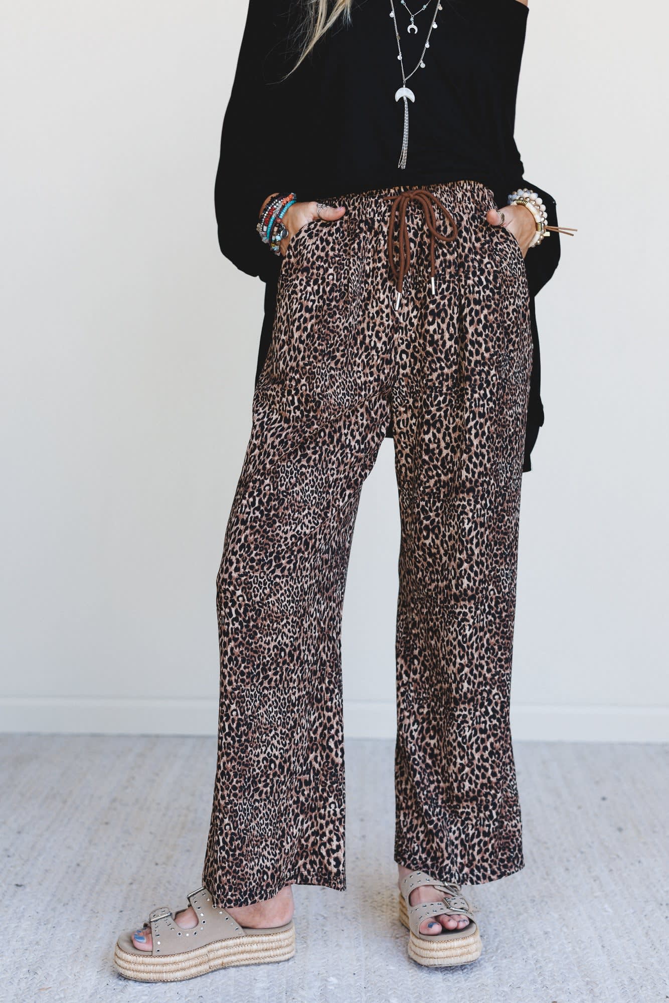 Unleash your wild side with the Wild Rhythm Pants. These leopard print stunners are equal parts fierce and flowy, perfect for lounging in style or stepping out with attitude.