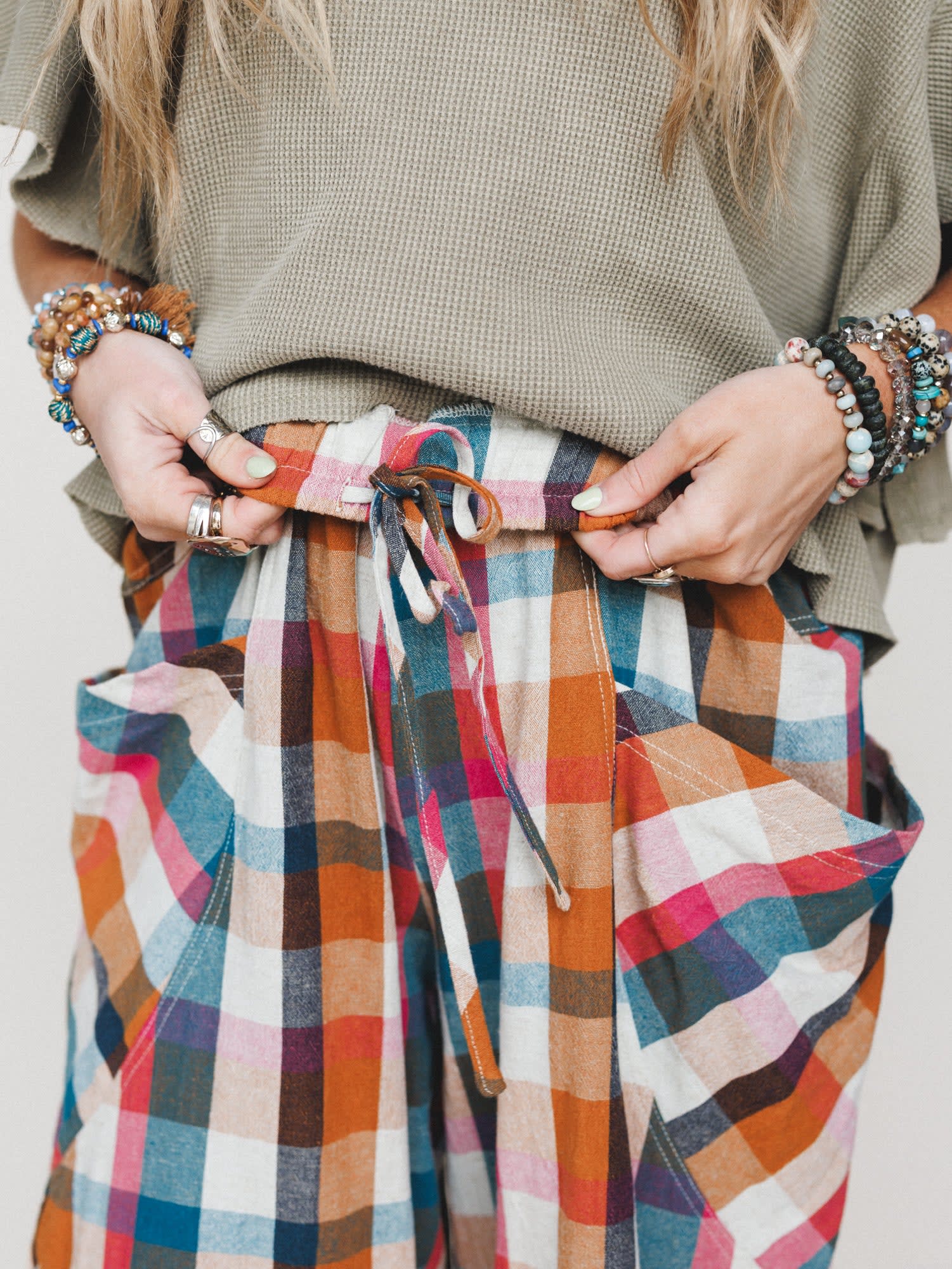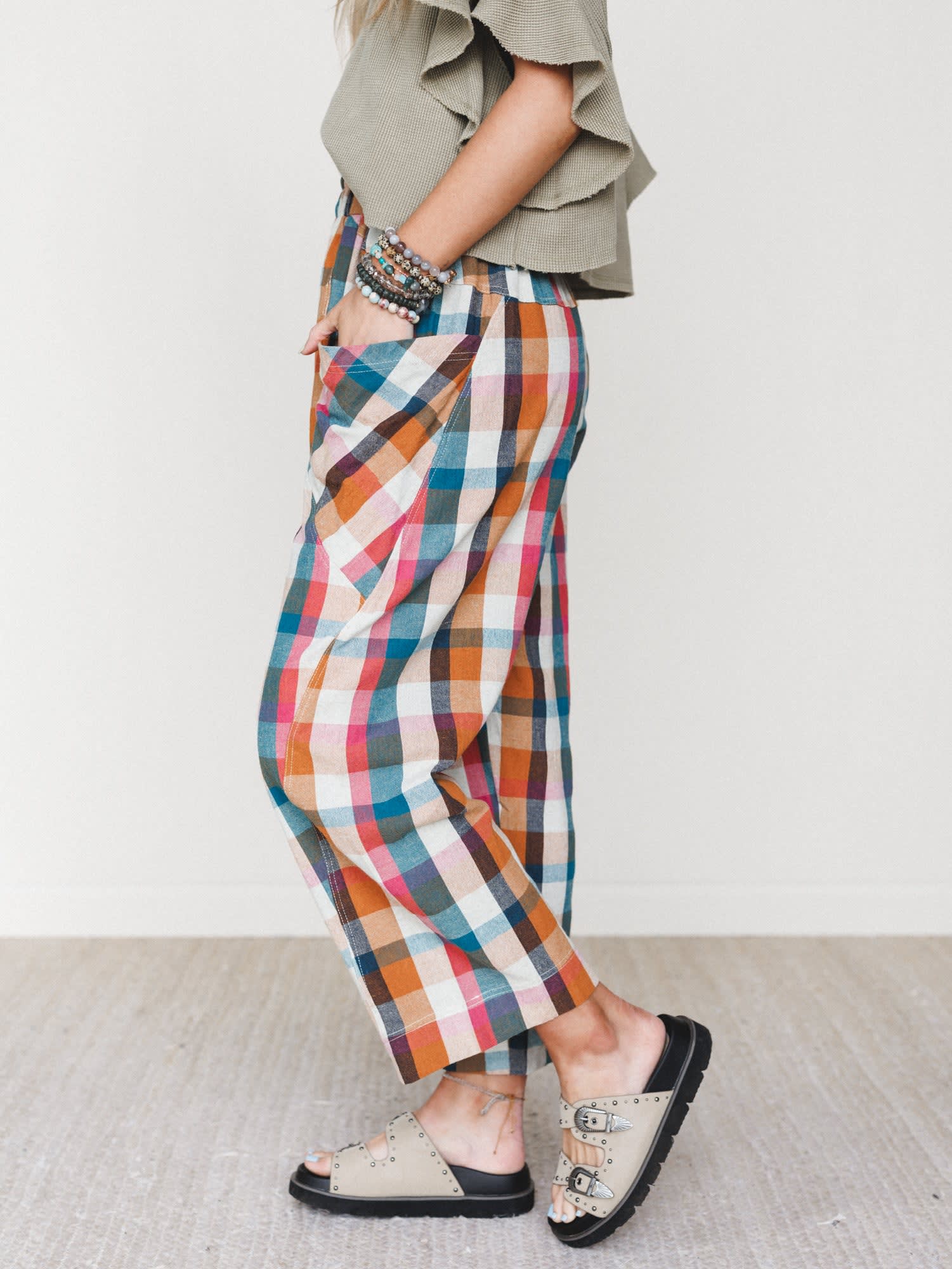 Bright, bold, and ready to roam—these colorful plaid pants bring a playful spirit to every outfit. Whether you’re road tripping or just running errands, they’re all about comfort with a side of fun. 🎨✌️